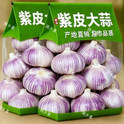 【3斤大蒜】山东金乡紫皮大蒜头批发干蒜特级大头蒜批发新鲜蔬