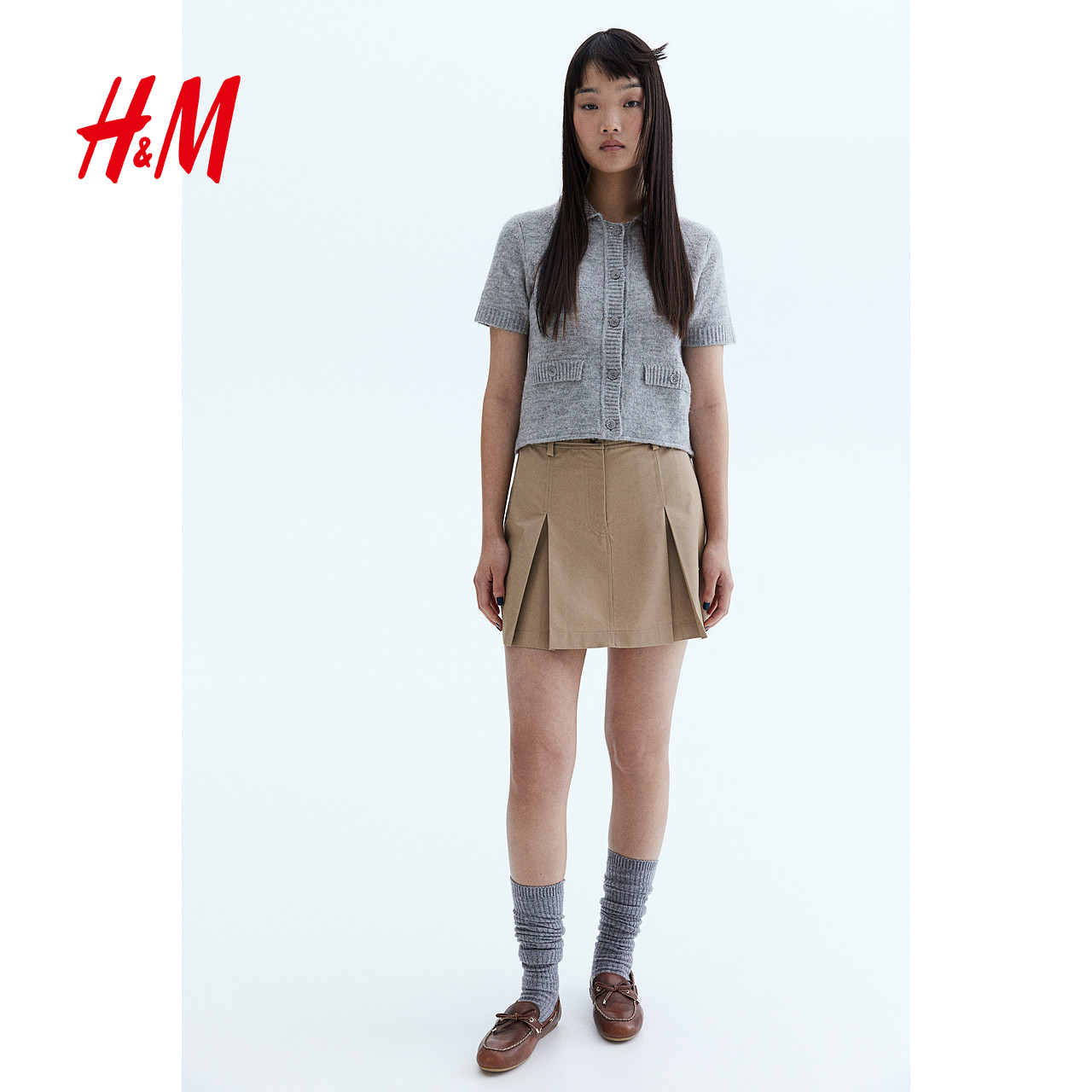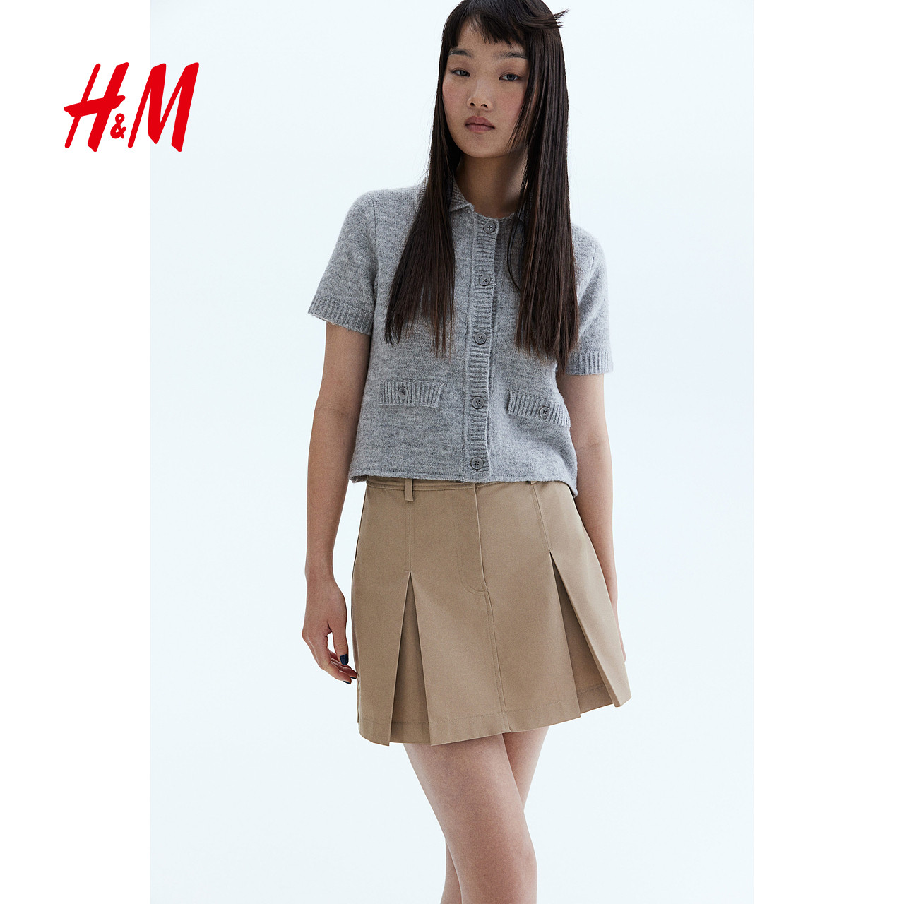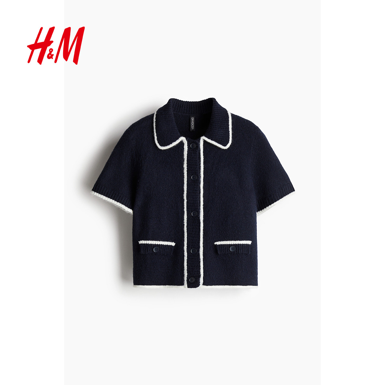 HM女装毛针织衫2025冬季新款翻领单排扣休闲气质短袖开衫1262823