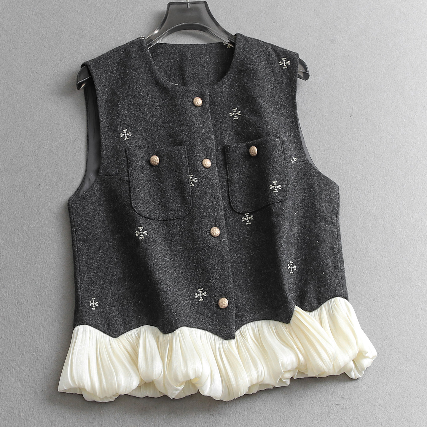 撞色碎花刺绣日常通勤无袖背心马夹半身长裙一整套女两件套装Q738