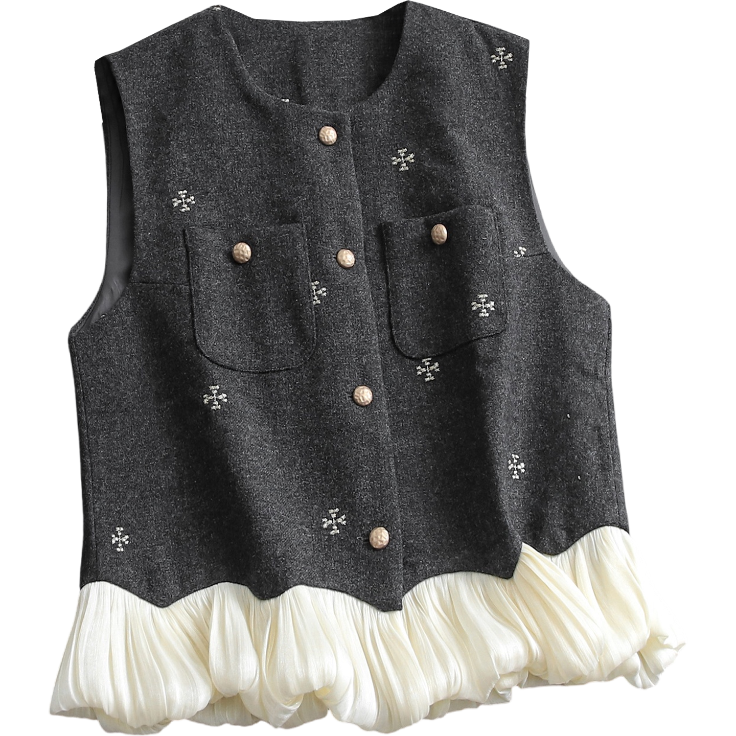 碎花刺绣日常通勤无袖背心女套装