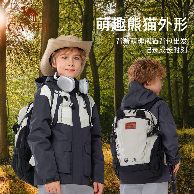 骆驼儿童幼儿园书包男女孩熊猫出游双肩包宝宝外出小背包登山包