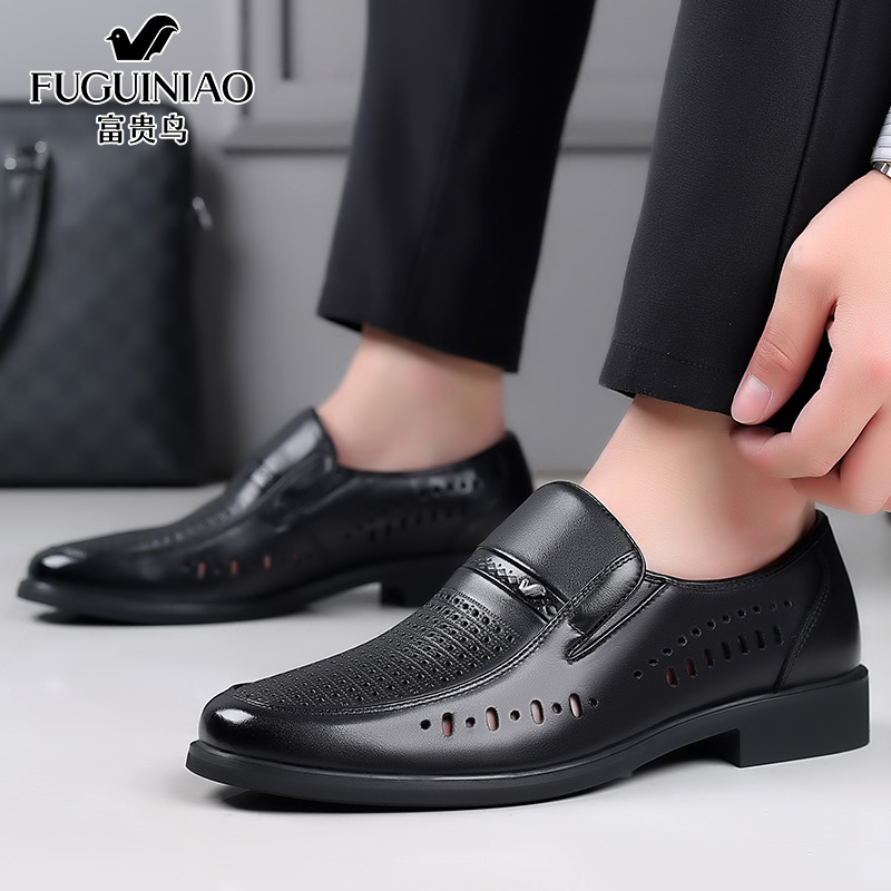 富贵鸟夏季透气商务正装皮鞋男士真皮镂空洞洞休闲头层牛皮凉鞋子