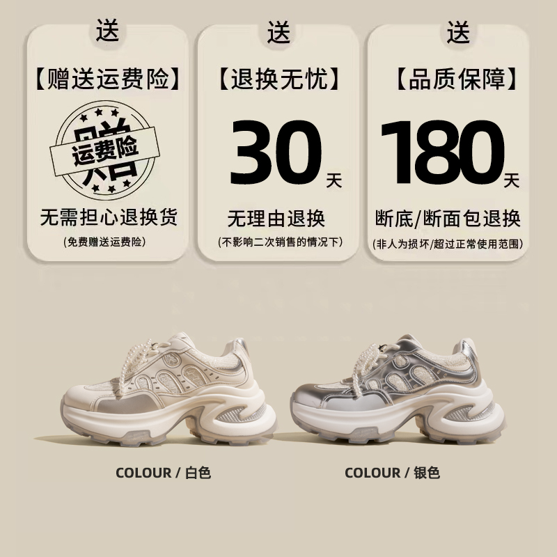 9cm内增高老爹鞋女2025新款蕾丝珍珠带厚底网面透气休闲运动鞋子