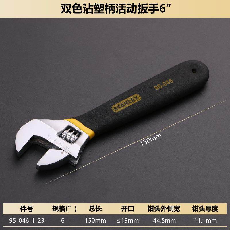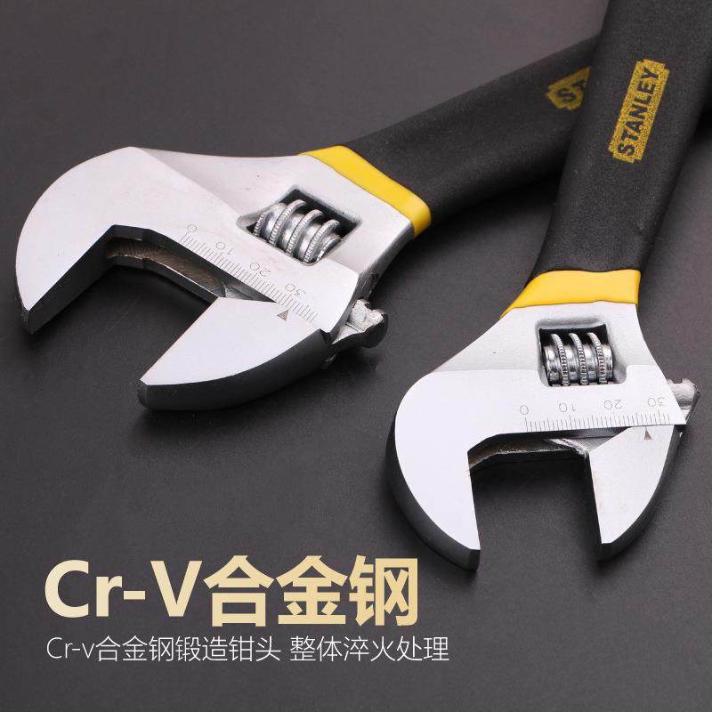 史丹利活动扳手高碳钢开口活扳手铬钒钢双色塑柄活口扳子