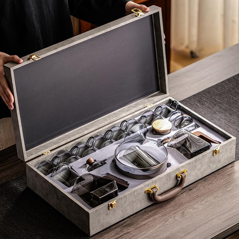 瓷牌茗玻璃茶具套组中式轻奢高档耐高温功夫茶壶茶水分离壶礼盒装