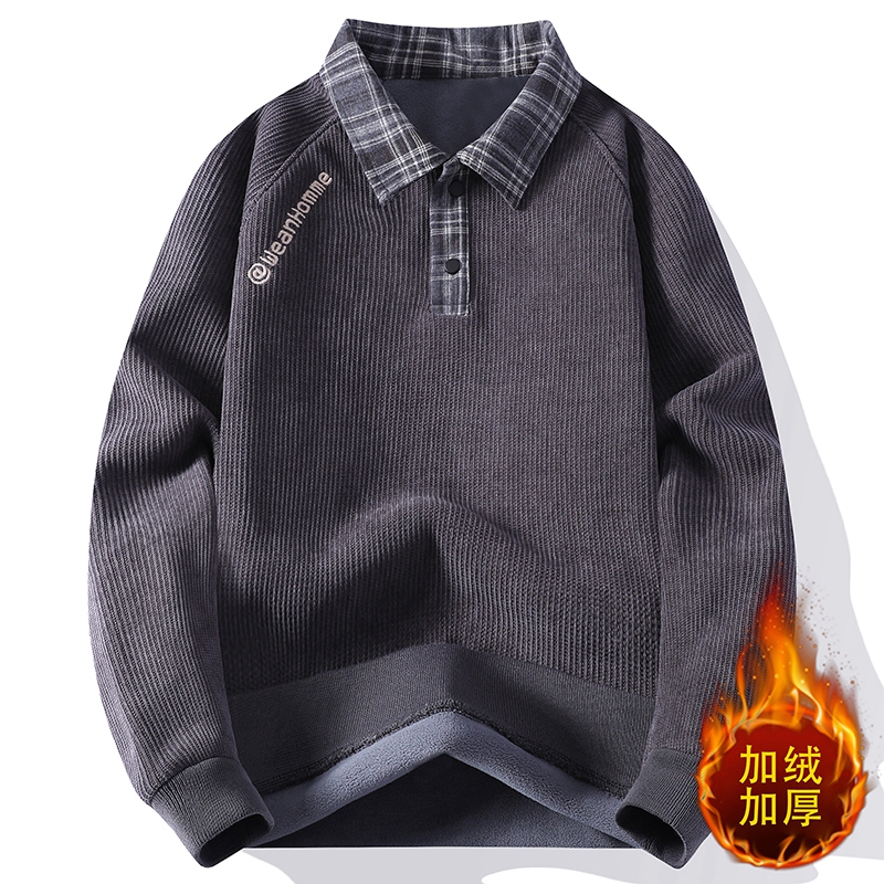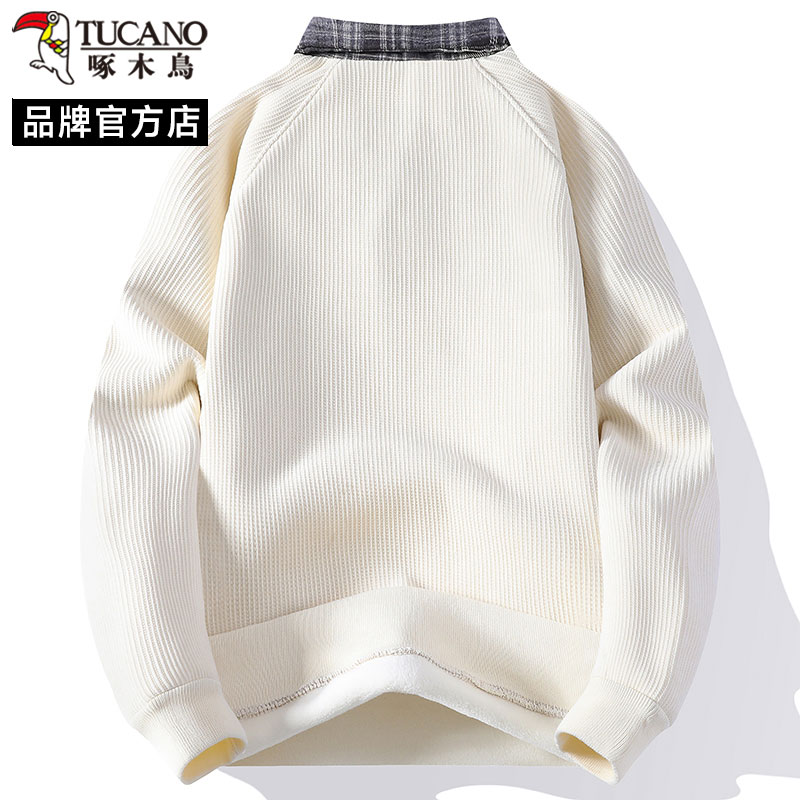 啄木鸟秋冬季2025新款男士加绒加厚衬衫领设计感卫衣保暖打底衫潮
