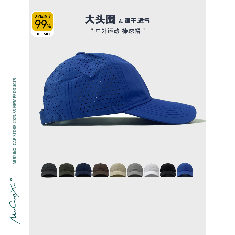 UPF50+原创自制大头围棒球帽网眼速干百搭纯色户外运动鸭舌帽男女