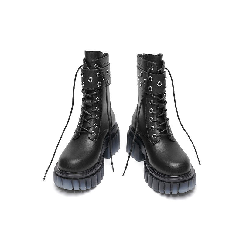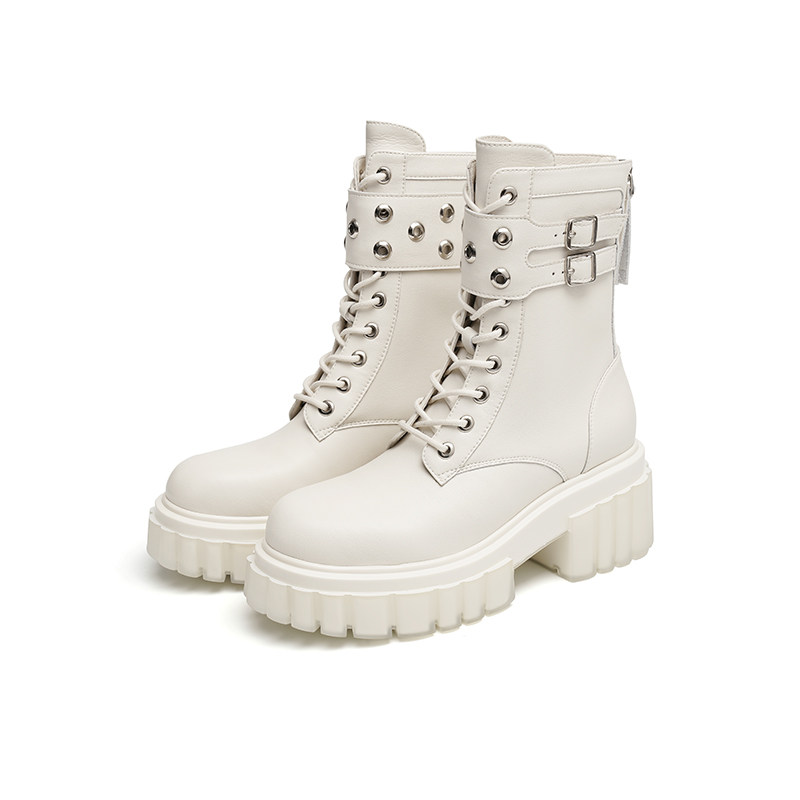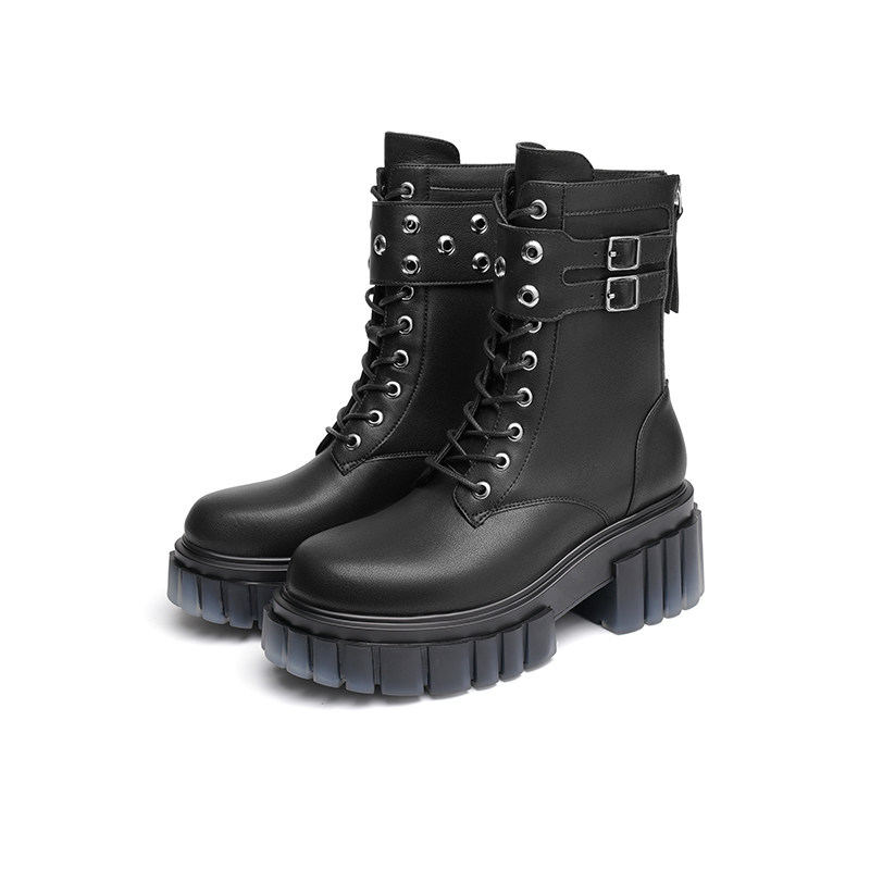 红蜻蜓女鞋高帮鞋女士单靴软底马丁靴小皮鞋百搭休闲鞋 断码清仓