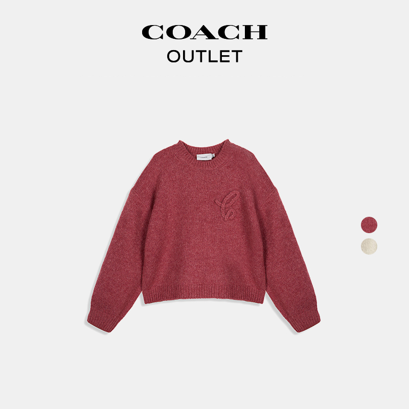 COACH/蔻驰奥莱女士经典标志老花圆领毛衣针织衫白色
