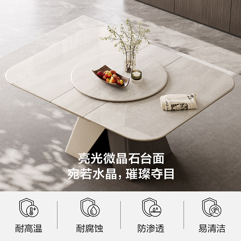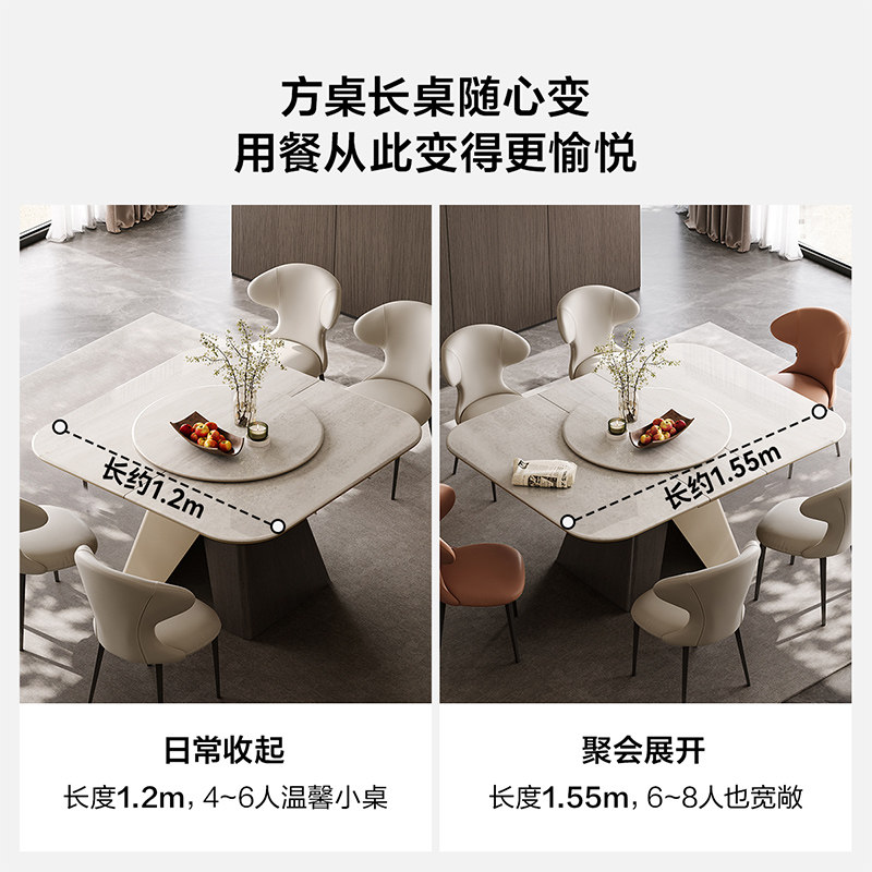 全友家居2025新款现代简约客厅微晶石餐桌可伸缩带转盘饭桌椅组合