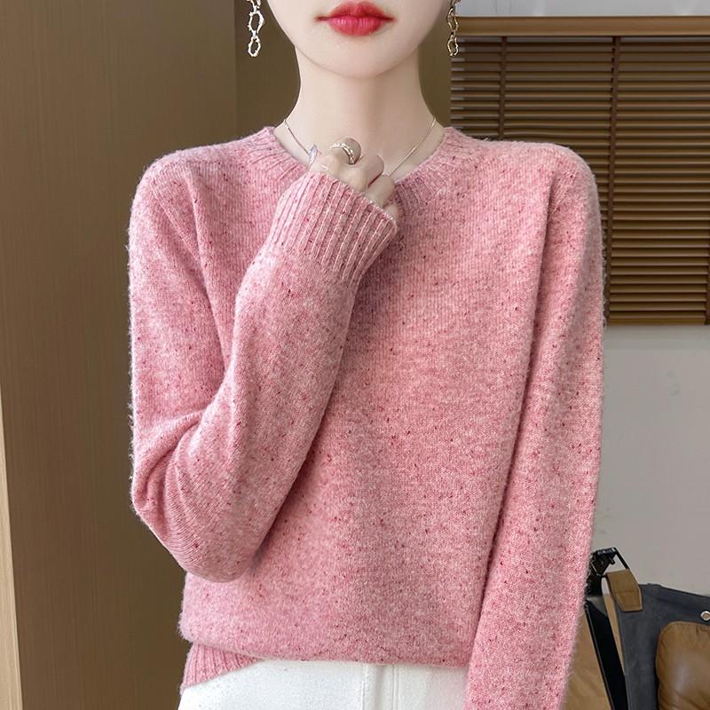 加厚一线七针100%纯羊毛衫彩点圆领宽松针织衫女纯色休闲百搭上衣