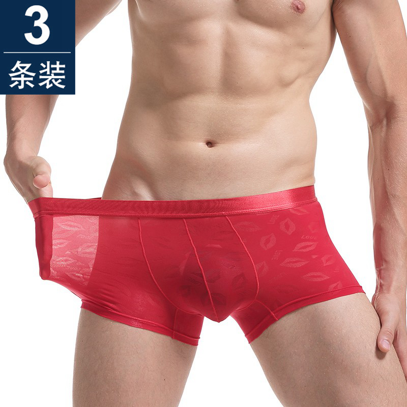 男士蕾丝内裤男冰丝无痕平角裤夏季薄款青年透气透明低腰性感四角