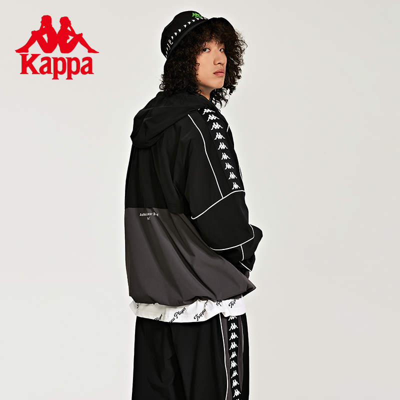 Kappa卡帕男子冬新款梭织外套拼色连帽长袖防风衣K0D52FJ60