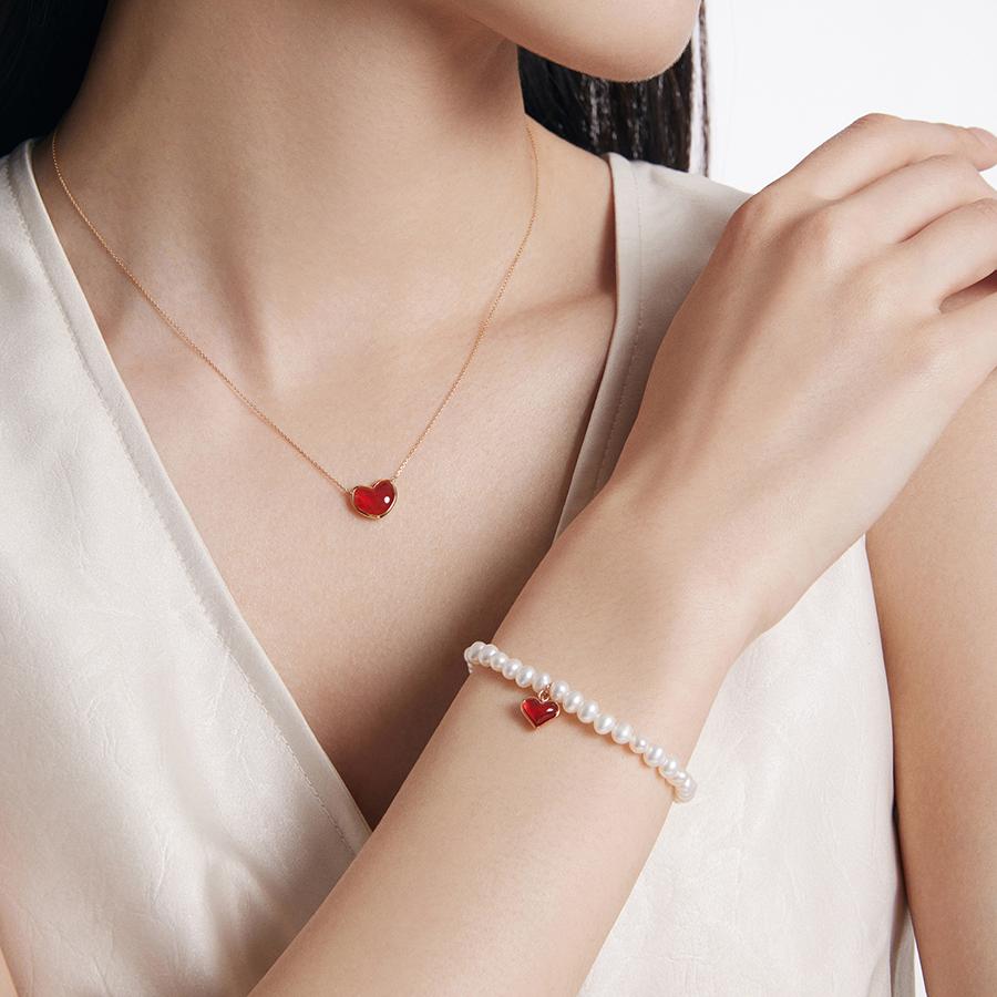 新款ENZO 怦然心动 18K金爱心红玉髓项链女EZV9005