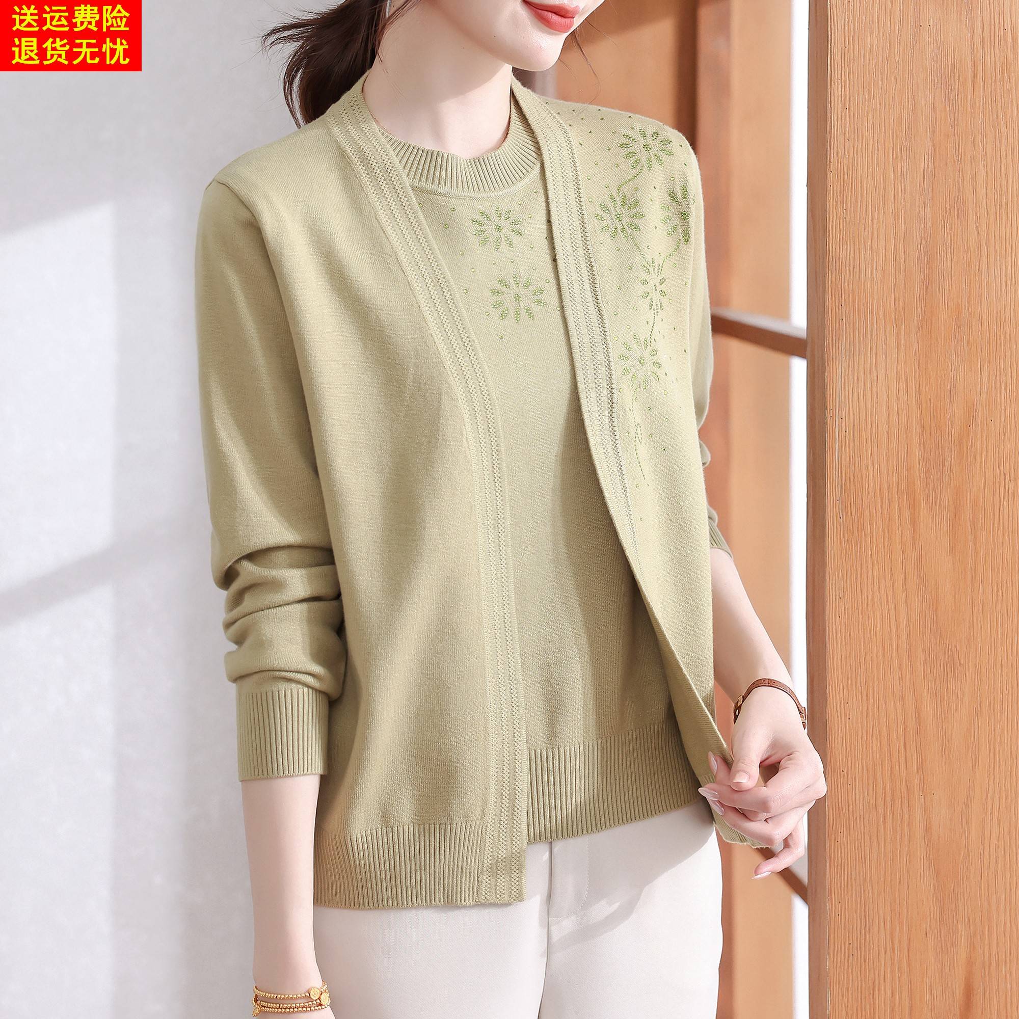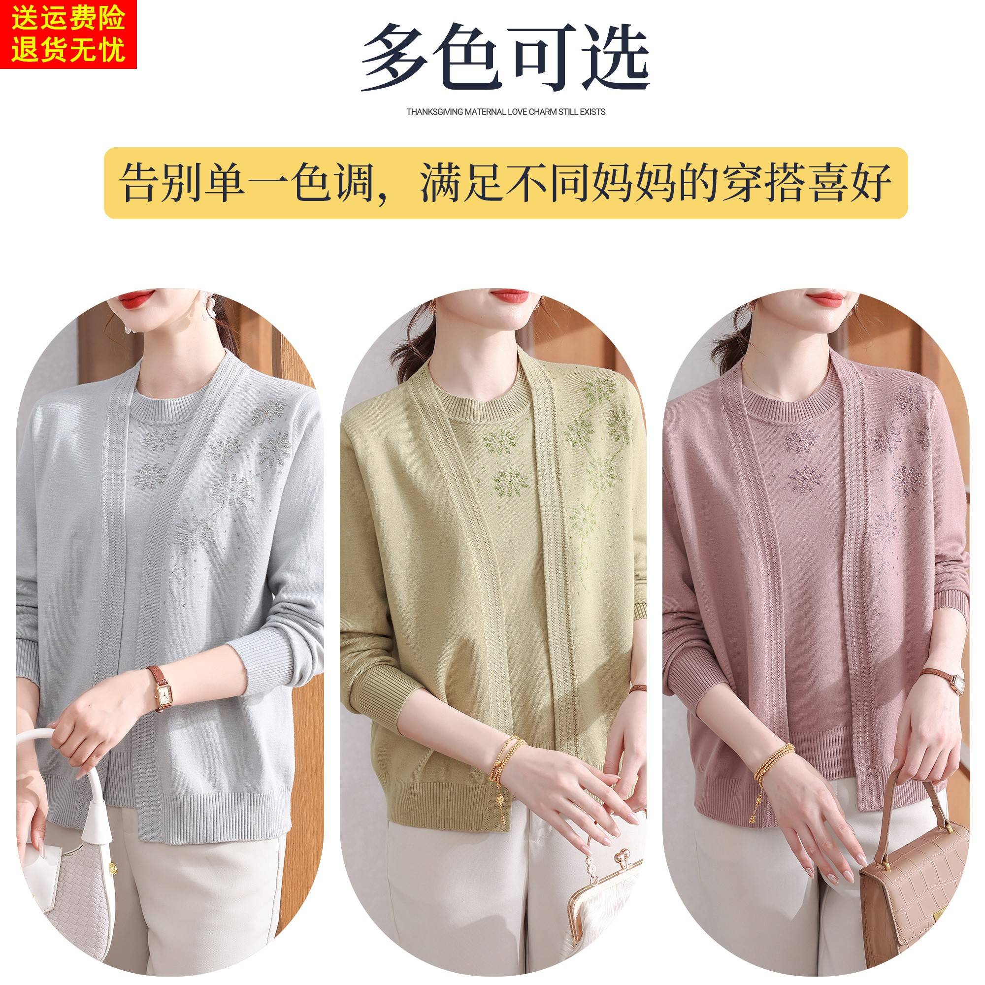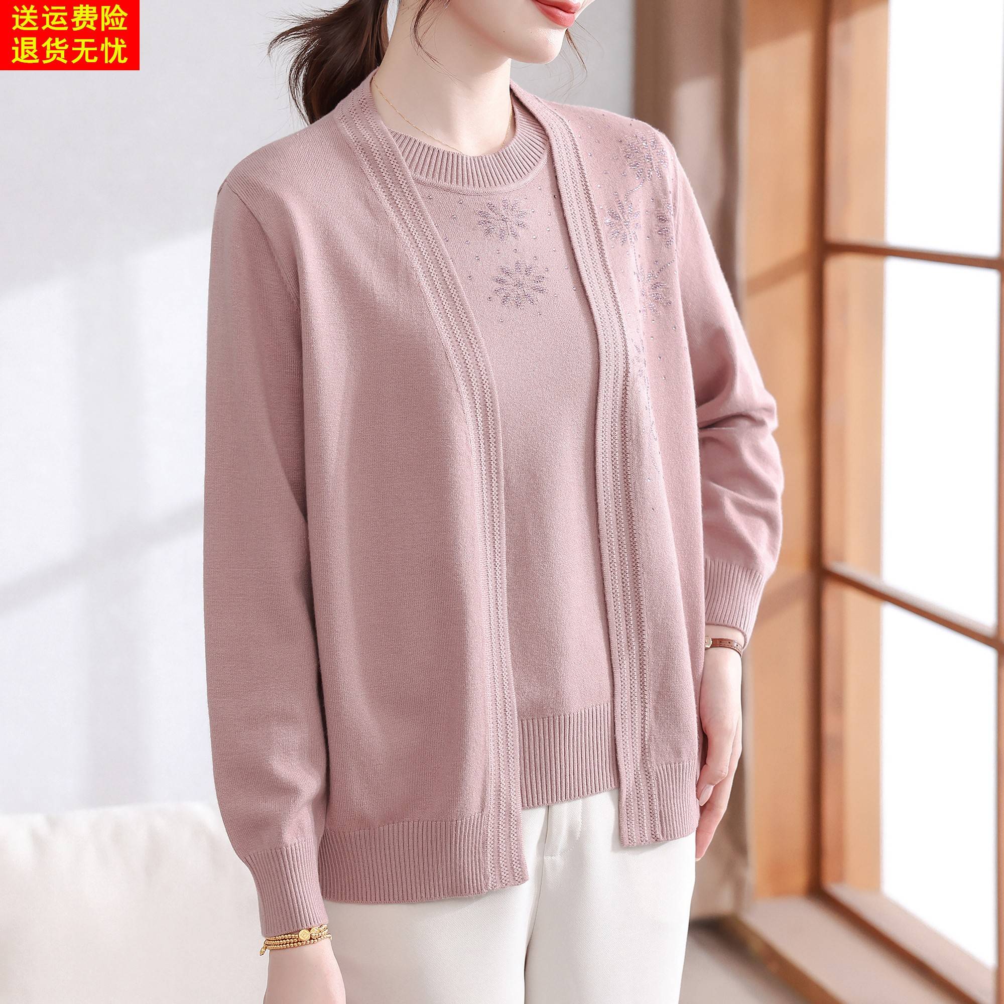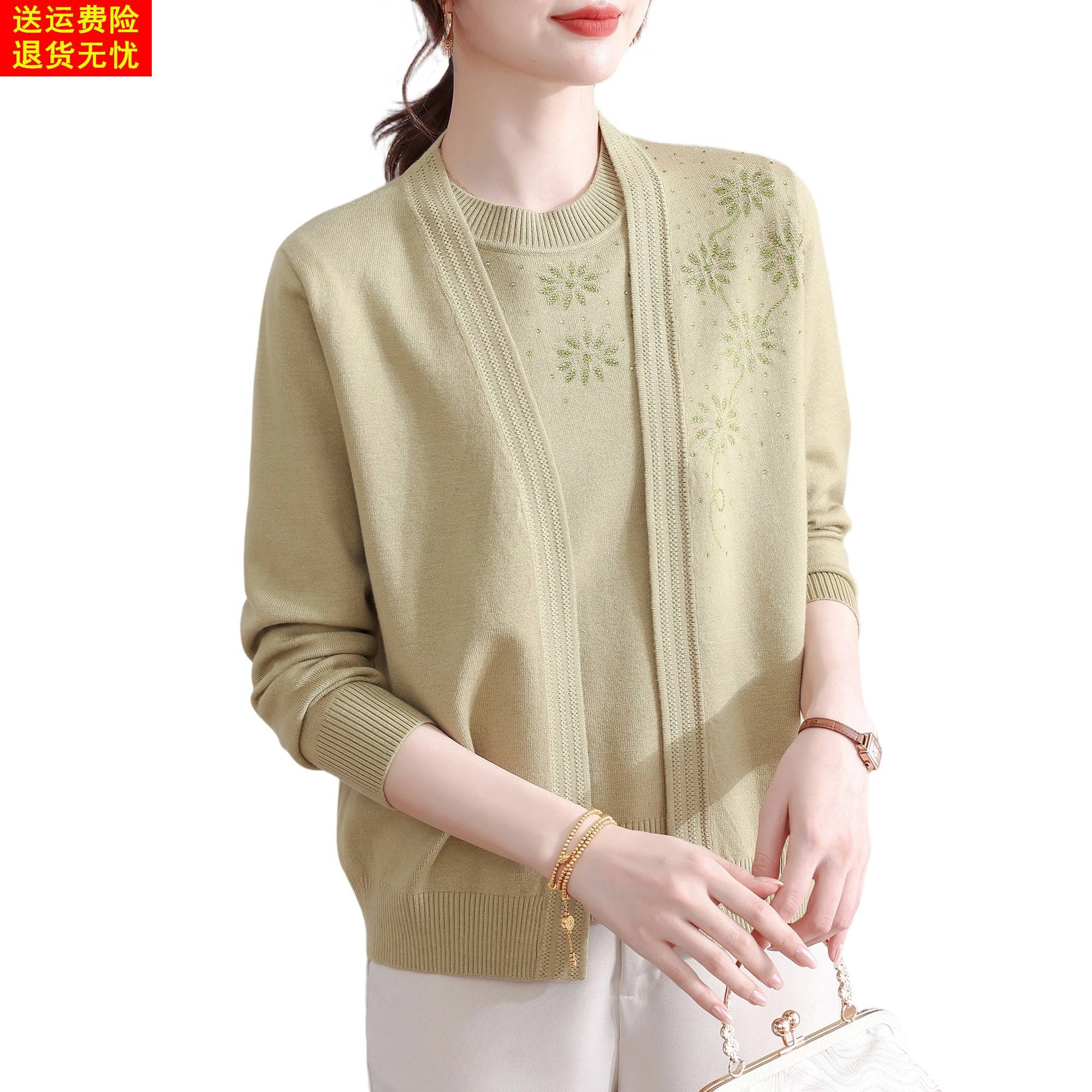 妈妈秋装2025新款针织两件套时尚春秋薄款外套中老年女装打底衫50