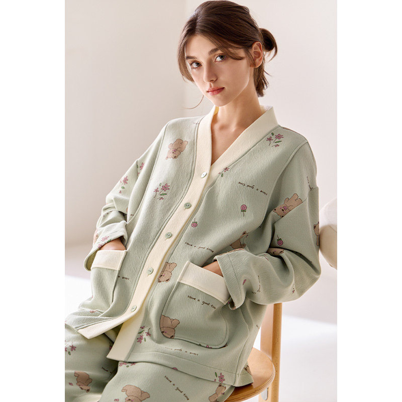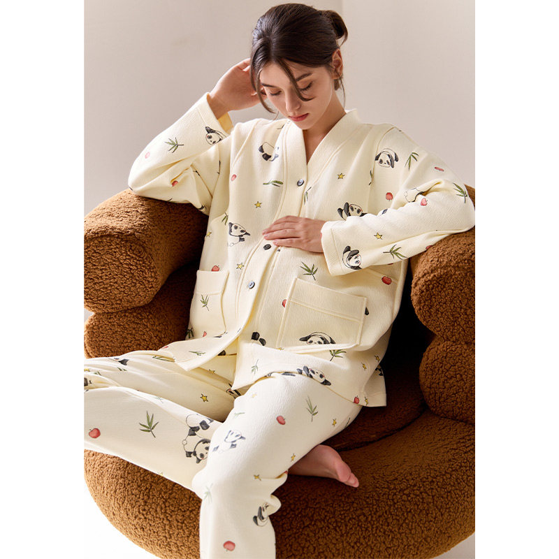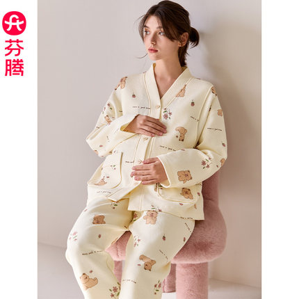 芬腾月子服秋冬季女士纯棉空气棉夹层孕妇睡衣抗菌产后哺乳家居服