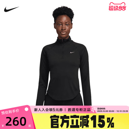 NIKE耐克女子透气速干跑步上衣反光半拉链立领运动卫衣HV2843-010