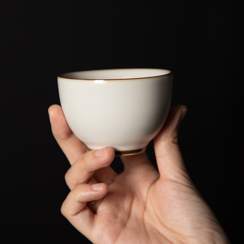 ATPEUN陶瓷【单茶杯满110ml半哑光】精工汝窑 米黄色 禅定杯主人