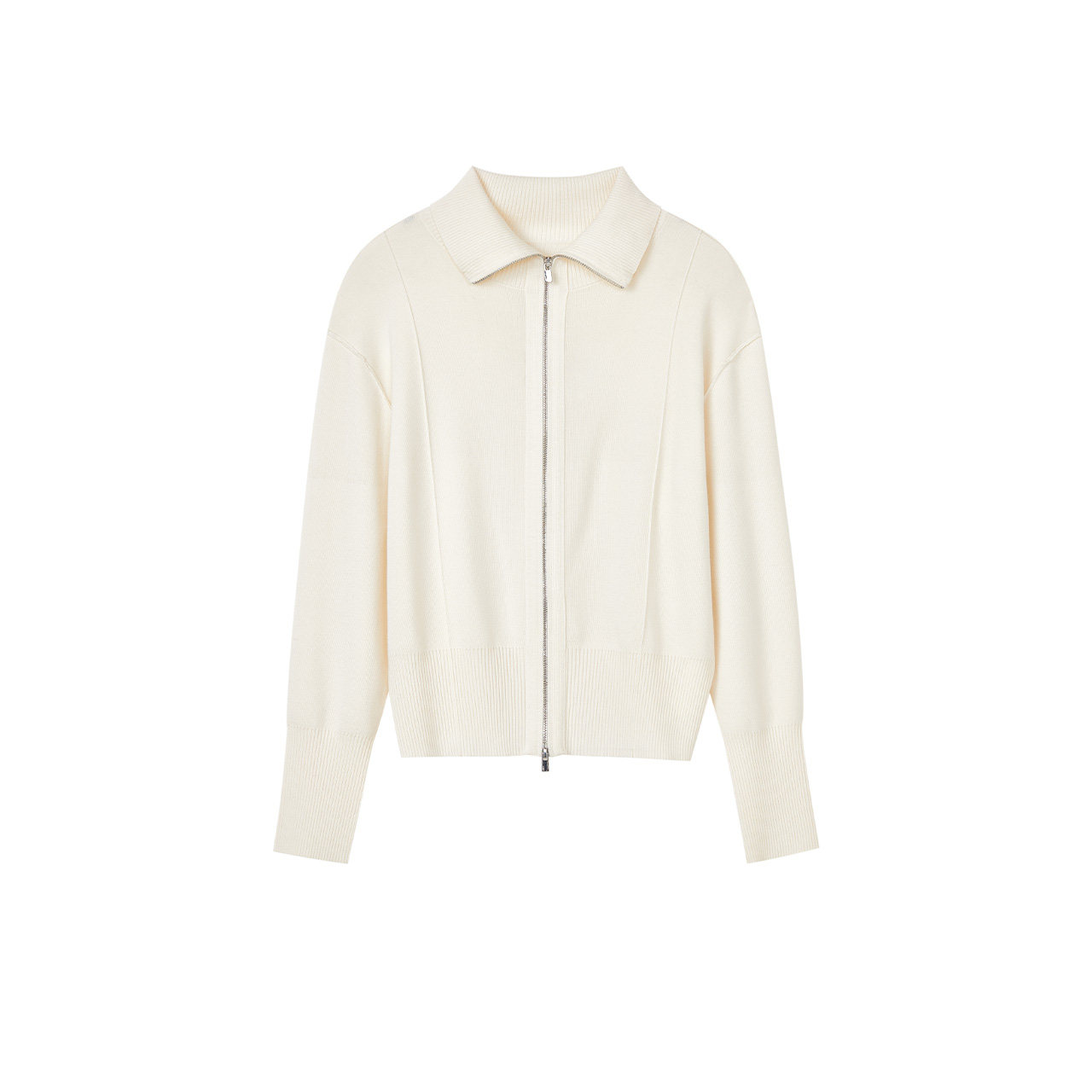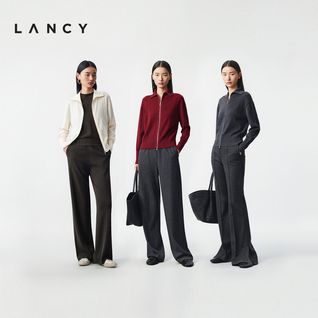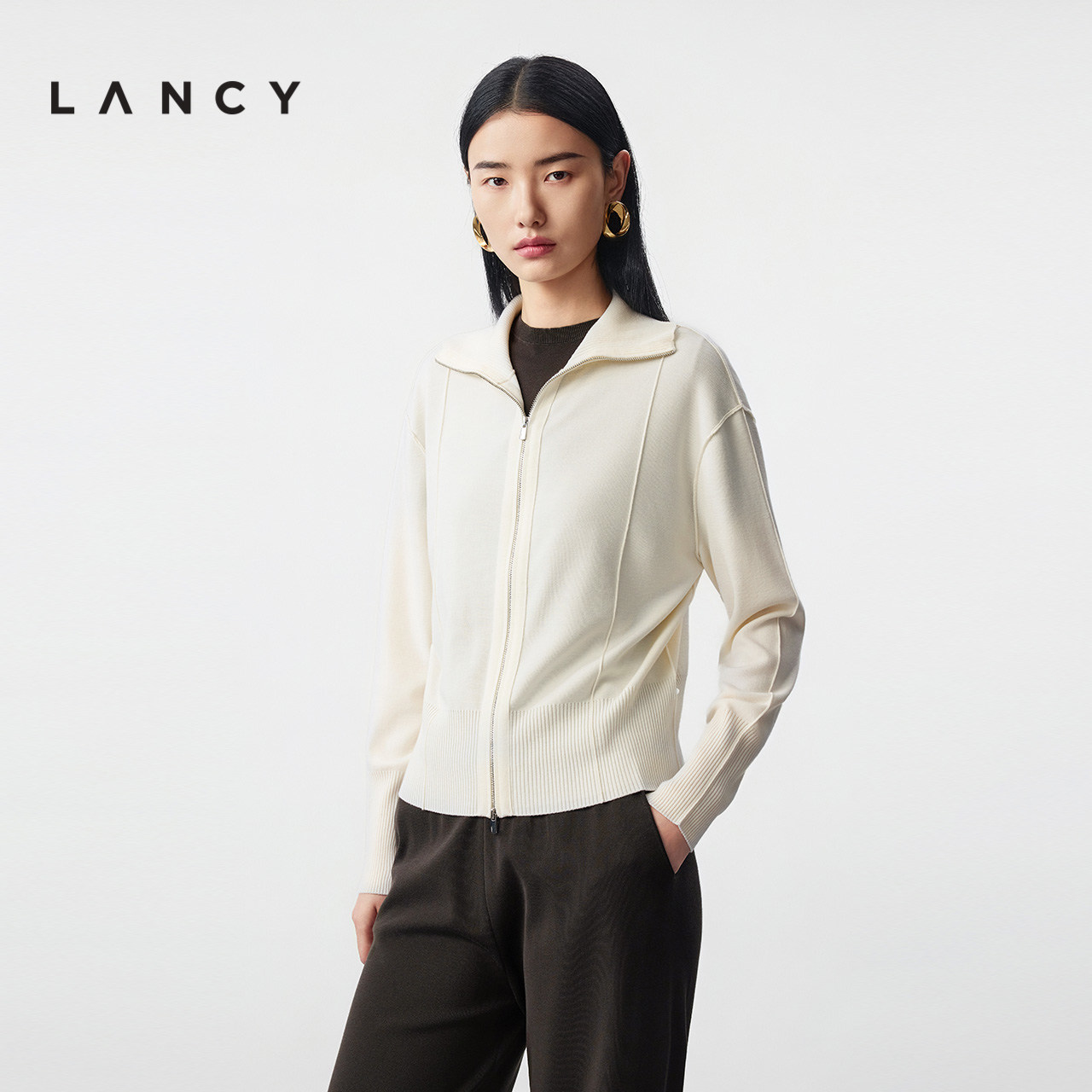 LANCY/朗姿2025冬新款简约休闲羊毛针织开衫女秋双拉链高级感上衣