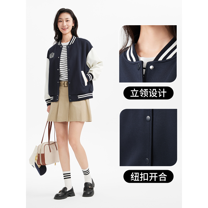 热风女士棒球服夹克外套2025年秋季新款女士美式复古宽松外套上衣
