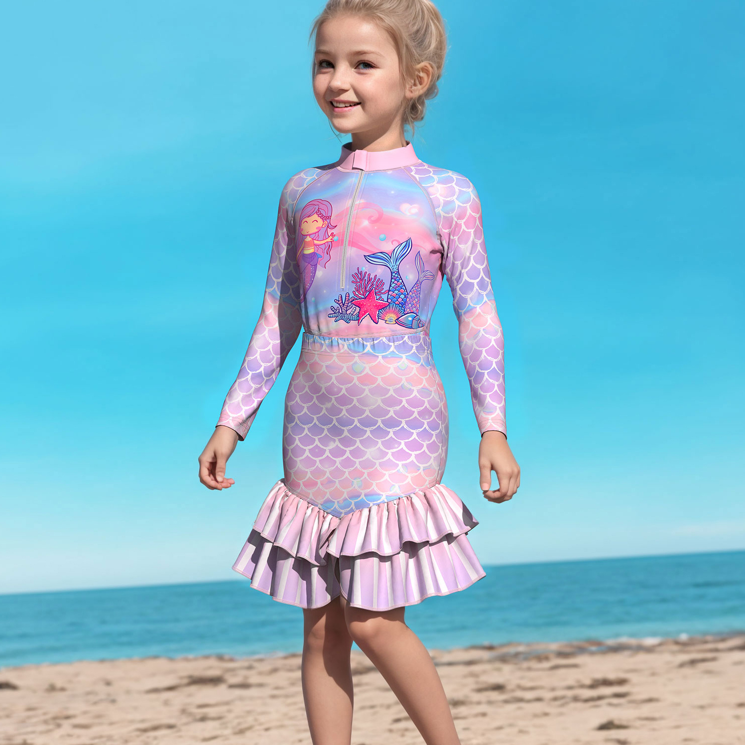 儿童泳衣女连体公主女孩可爱韩国大中小童泳装婴儿宝宝女童游泳衣