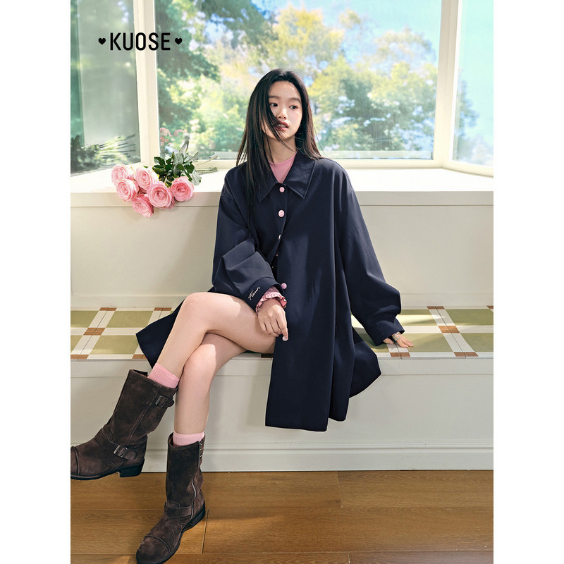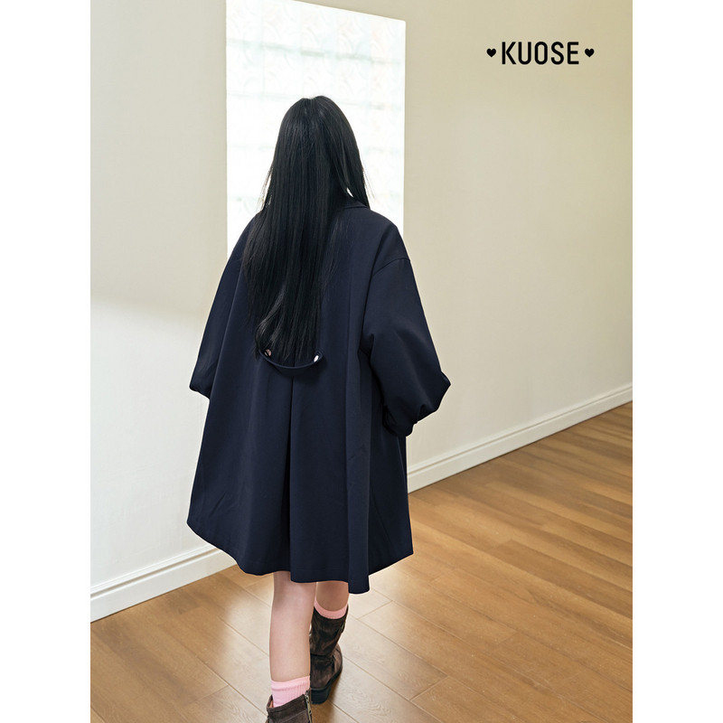 阔色藏蓝色中长款斗篷风衣女装2026春季新款通勤宽松外套大衣秋冬