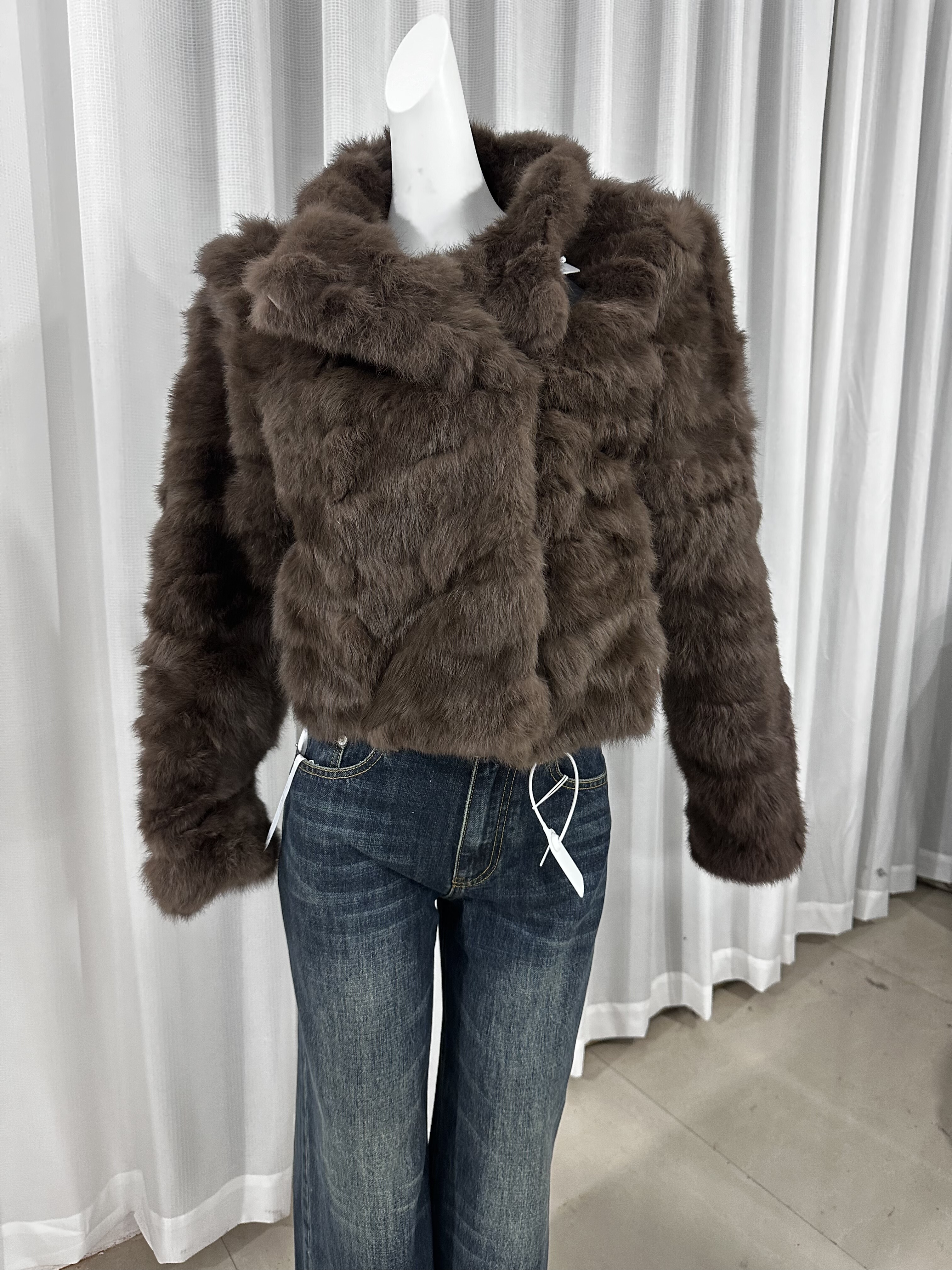 【金不换】 A级全真兔毛皮草女棕色毛毛外套短款显瘦