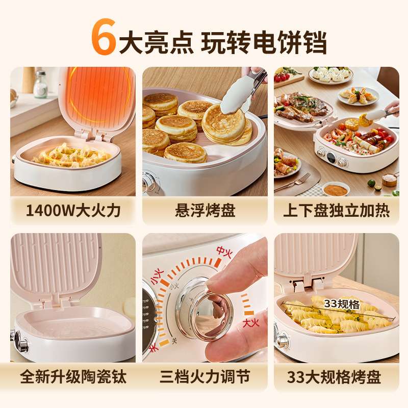 亿德浦家用双面加热新款加大加深煎饼烙饼一体机双盘烤盘电饼铛