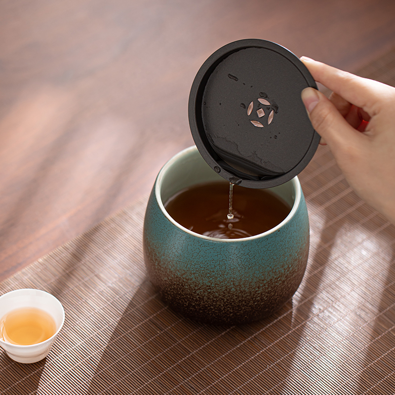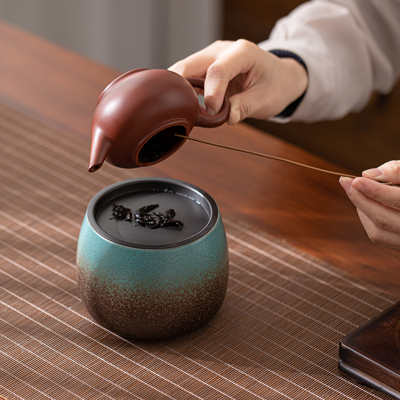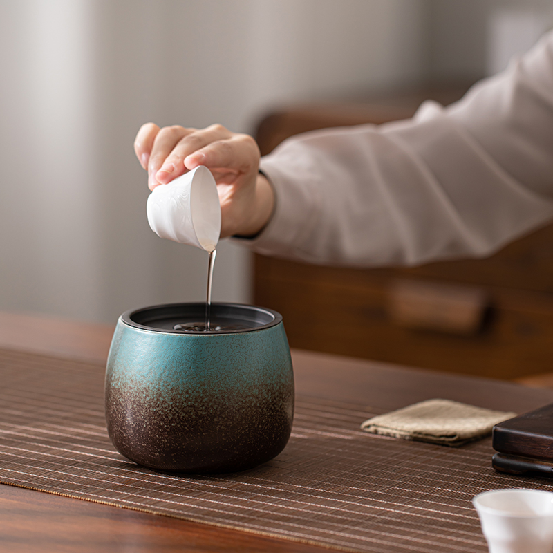 记今朝茶渣缸孔雀绿窑变茶洗茶盂废水缸家用复古杯洗笔洗茶道配件