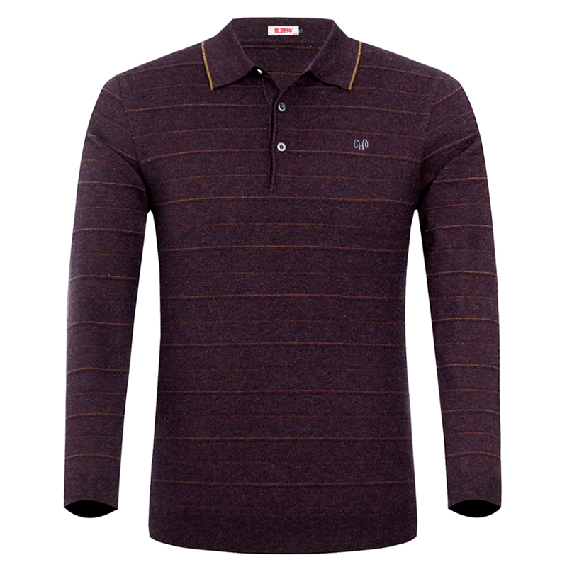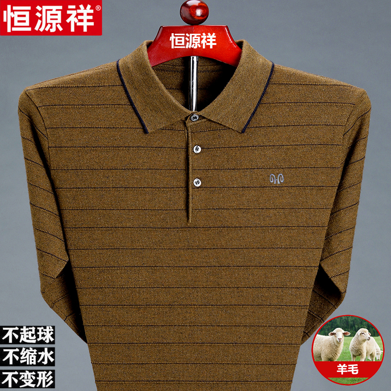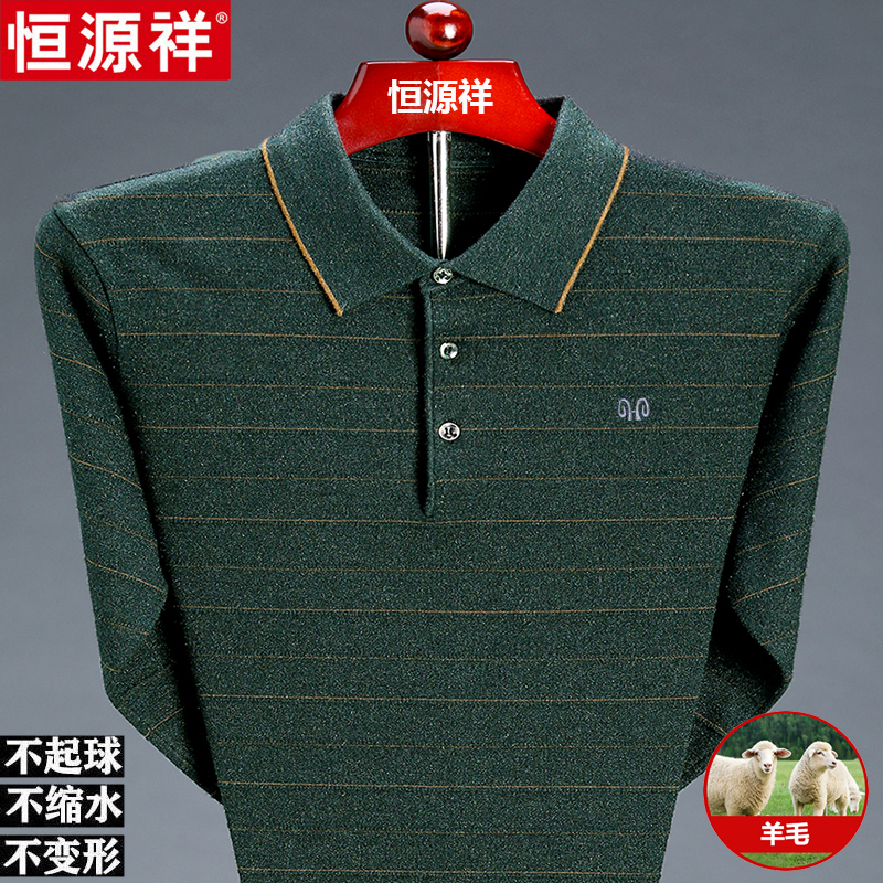 2023年春季恒源祥长袖t恤男翻领爸爸装中老年条纹羊毛针织打底衫