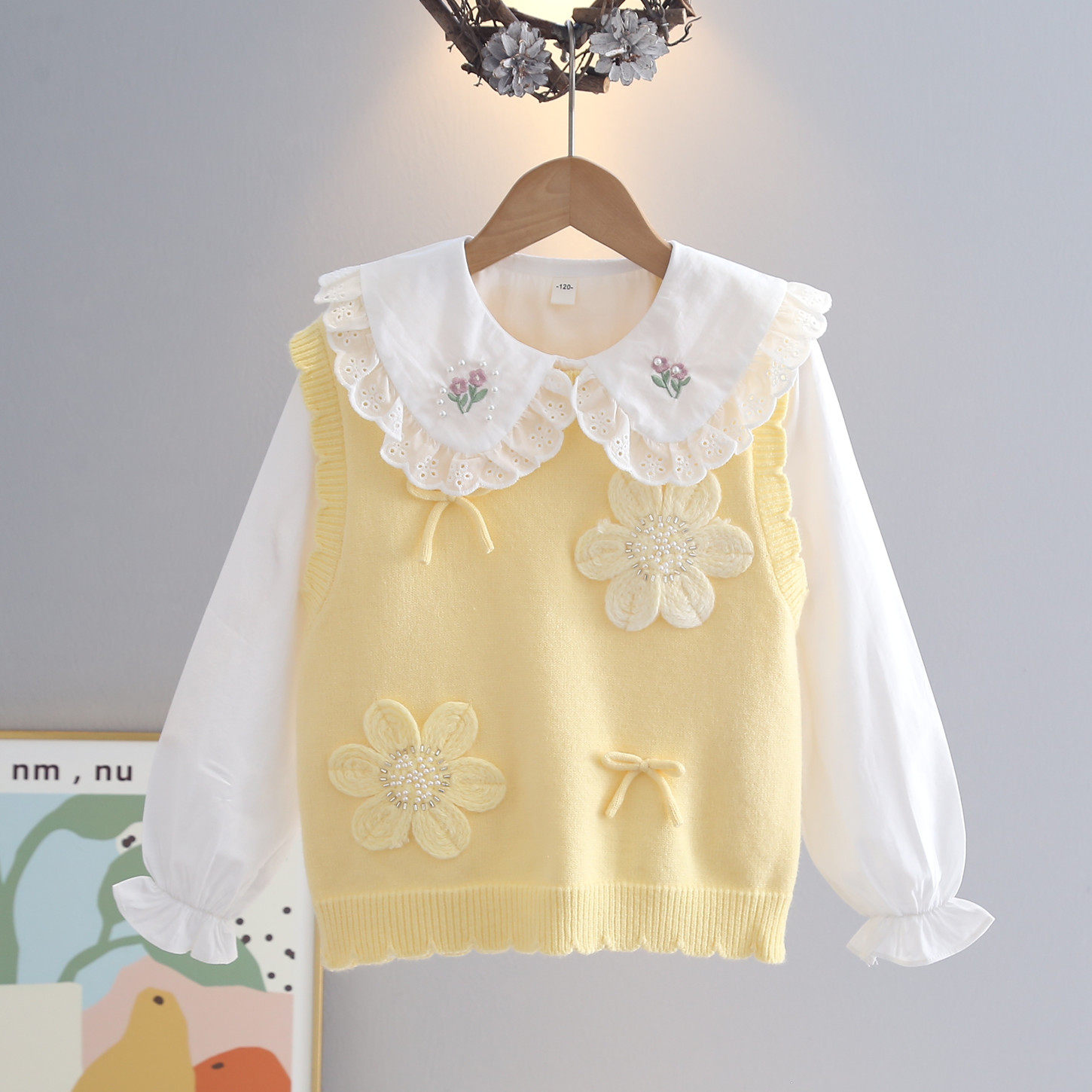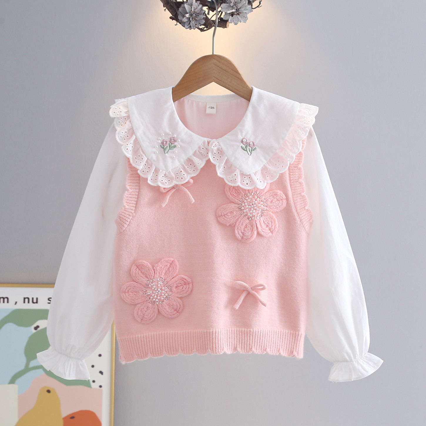 女童衣服毛衣背心衬衣上衣2025春秋儿童针织衫中童女童装