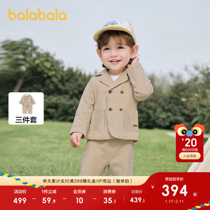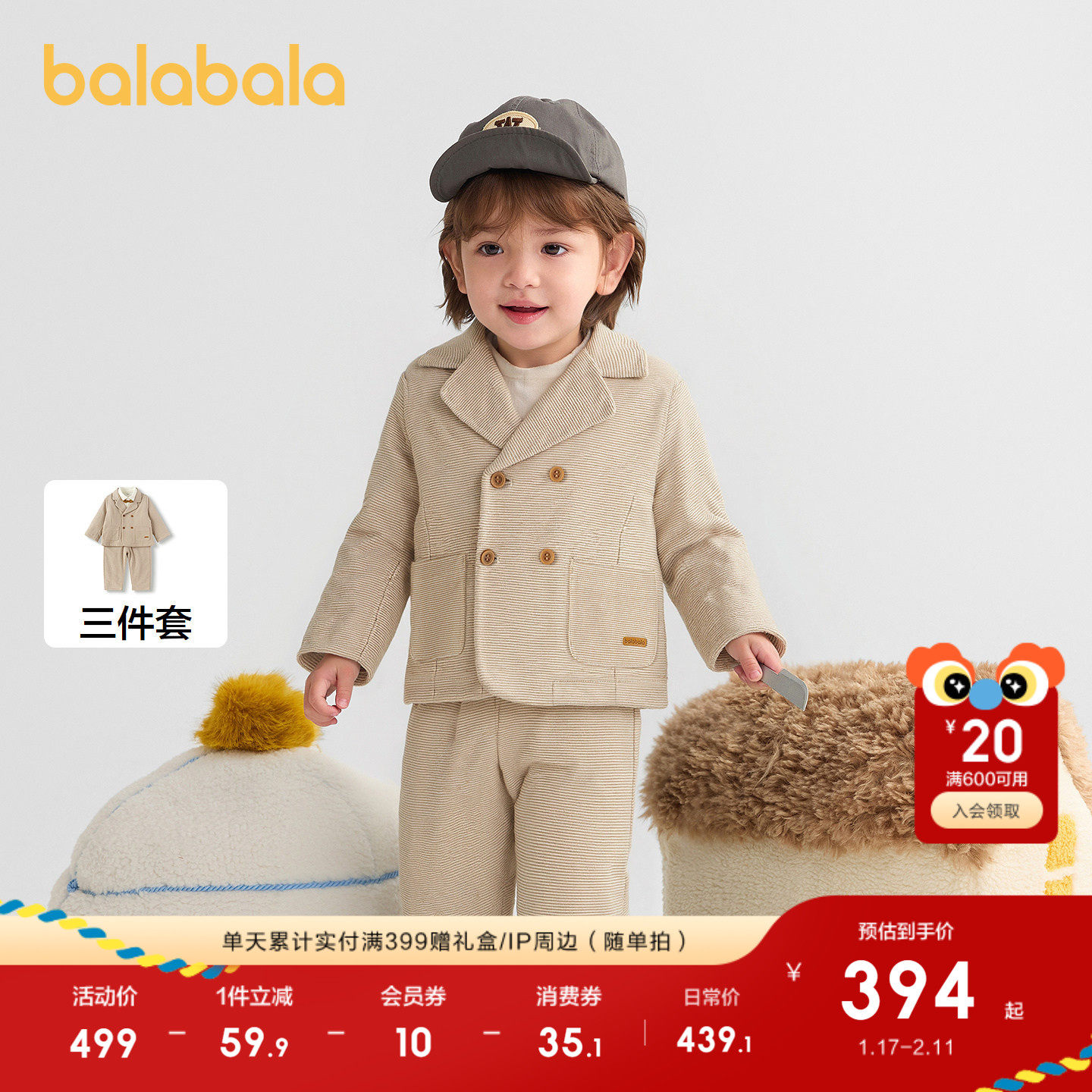 【商场同款】巴拉巴拉男童套装正肩西装三件套2025新款秋冬装百搭