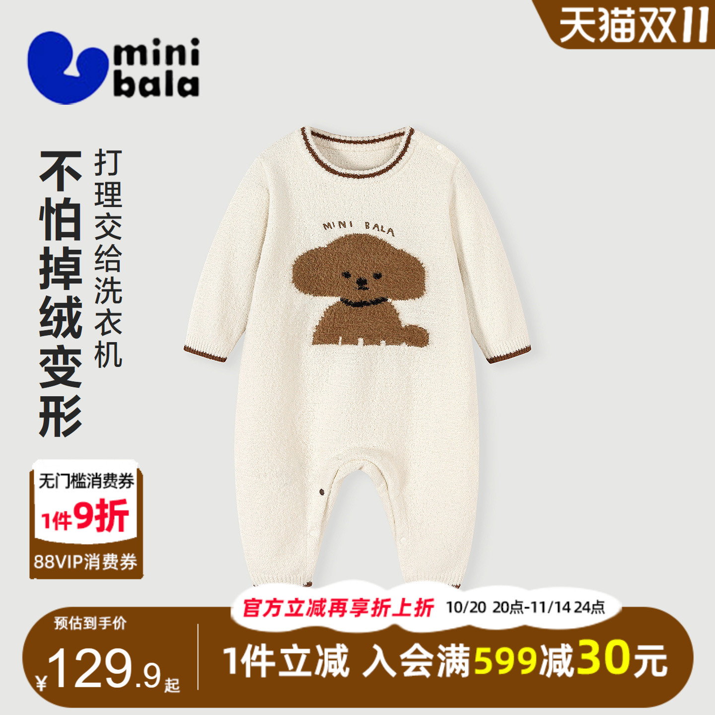 迷你巴拉巴拉男女宝宝连体衣2025秋冬婴儿保暖可爱柔软半边绒爬服