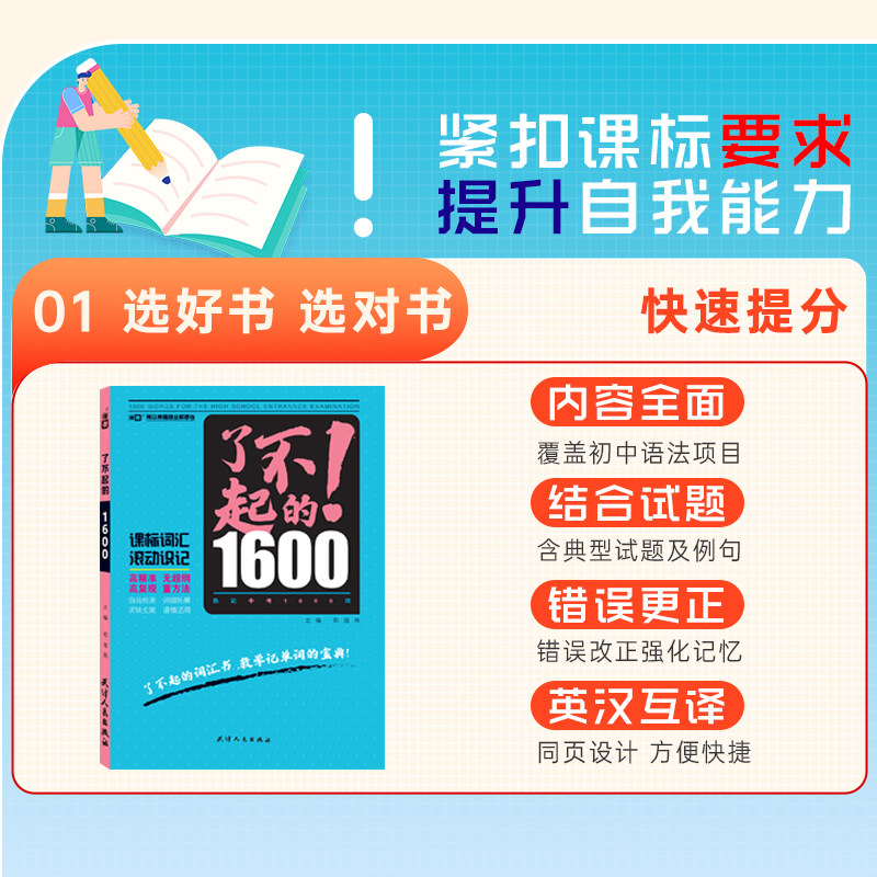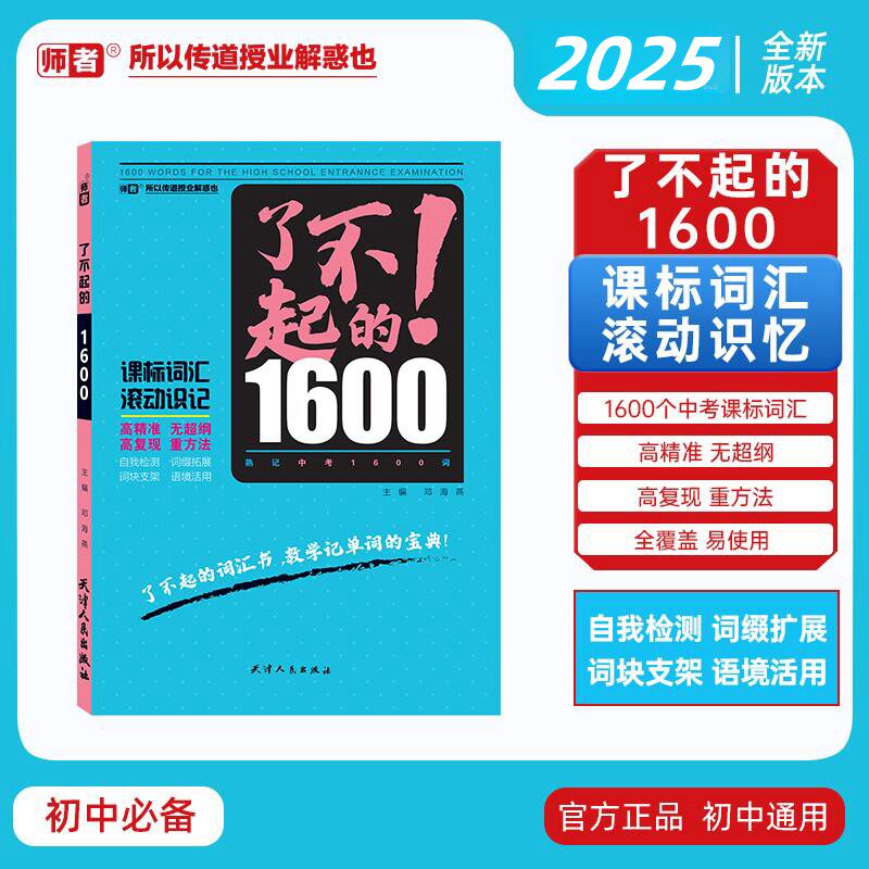 全新正版 了不起的1600熟记1600词中考课标词汇人教译林外研北师大版默写本通用版高精准自我检测词缀拓展词块支架语境活用