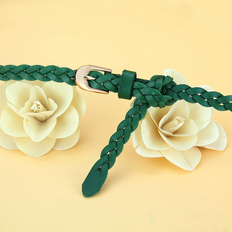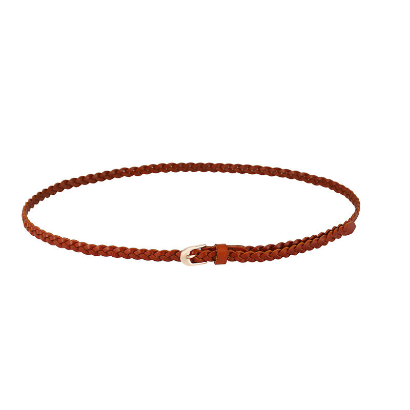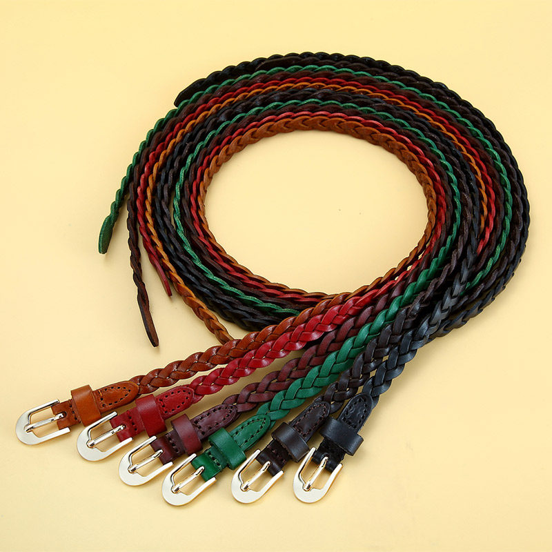 头层牛皮带女士细腰带9589编织配饰连衣裙牛仔韩版休闲简约百搭