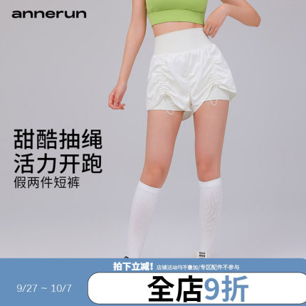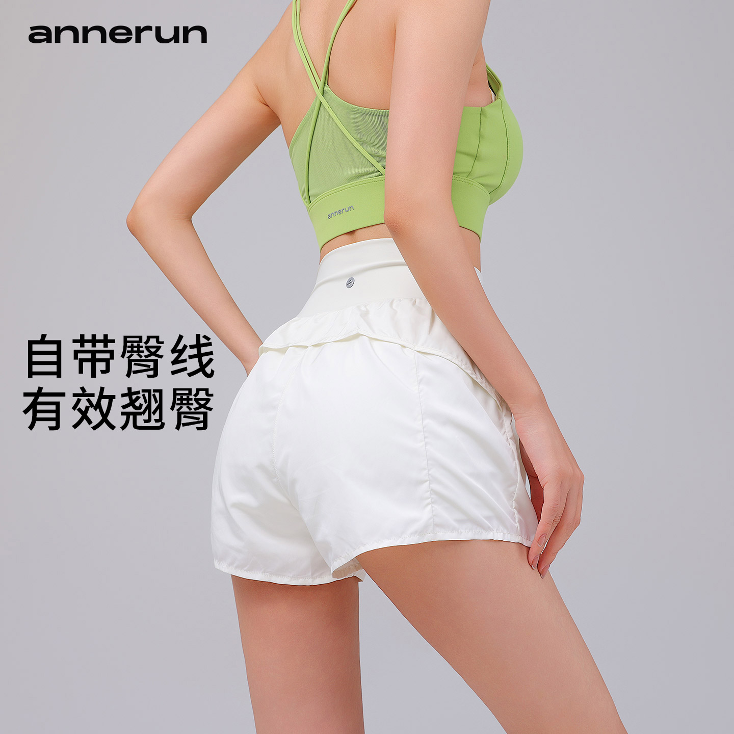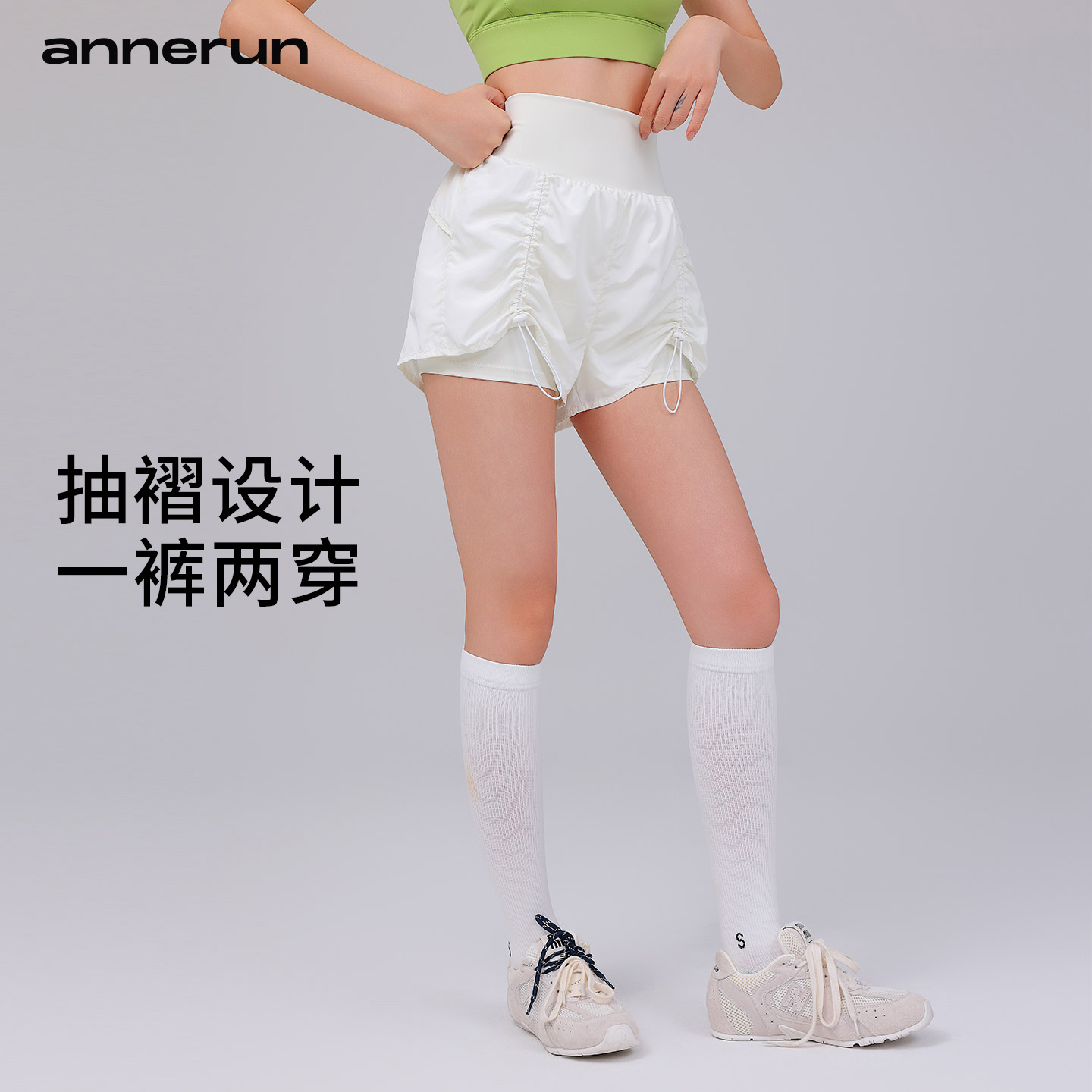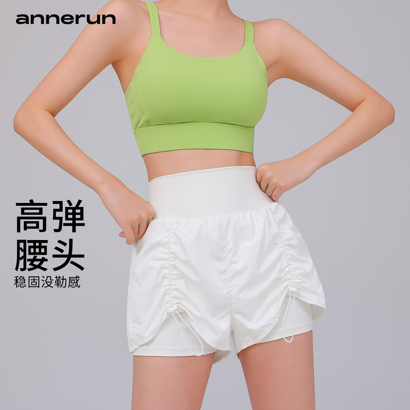 annerun假两件运动短裤女防走光高腰休闲跑步健身设计感瑜伽短裤