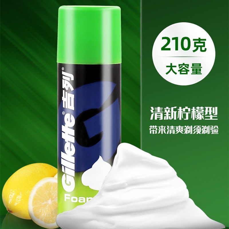 剃须泡沫柠檬男士顺滑剃须啫喱膏刮胡泡吉列清新柠檬软化胡须210g