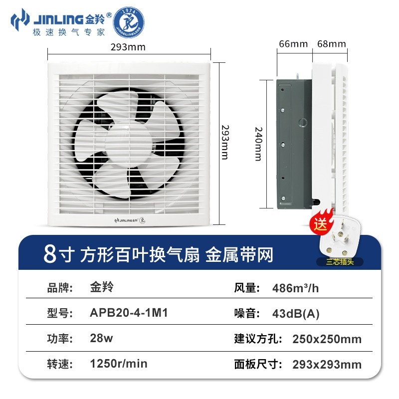 金羚自带线排气扇家用卫生间墙壁厨房油烟排风半塑强力换气扇方孔