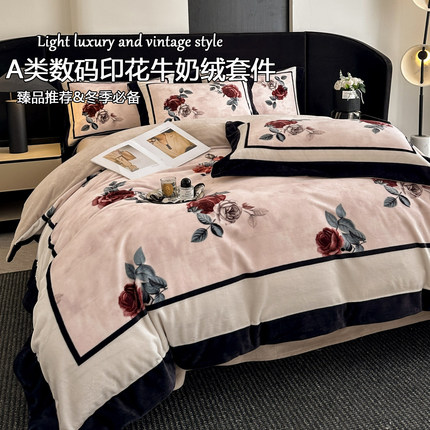 轻奢复古冬季保暖牛奶绒被套四件套高级感双面加绒珊瑚绒床单用品