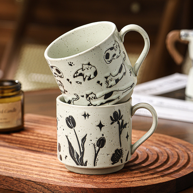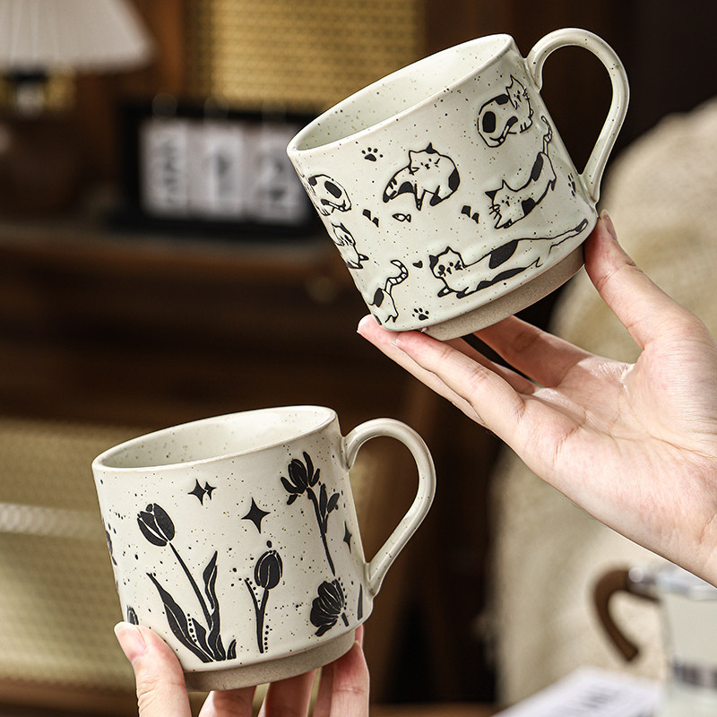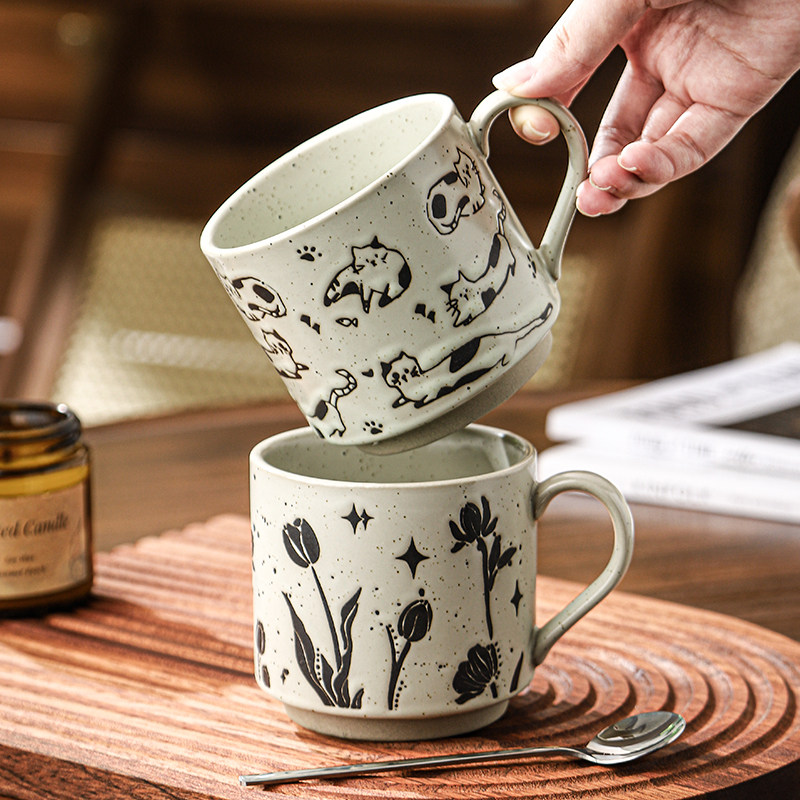 日式陶瓷马克杯家用喝水杯子办公室茶杯情侣杯子一对高级感咖啡杯
