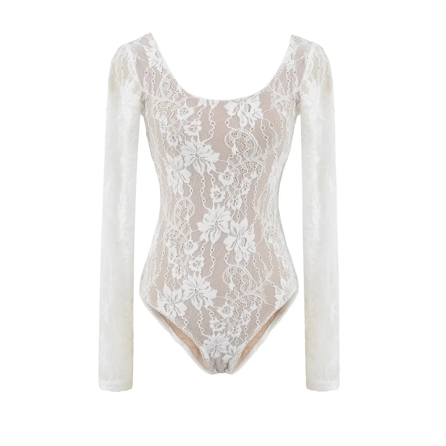 欧美风圆领蕾丝连体衣女秋季外穿浮雕镂空紧身性感打底衫连裆上衣
