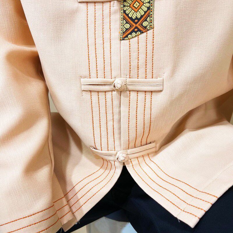 傣族男装立领盘扣浅橘色民族特色衬衣春秋冬长袖款男士衬衫