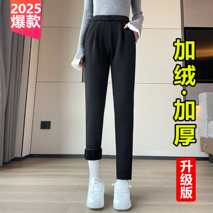加绒裤子女春秋冬2025爆款高腰显瘦哈伦裤冬季妈妈裤加厚大码女裤
