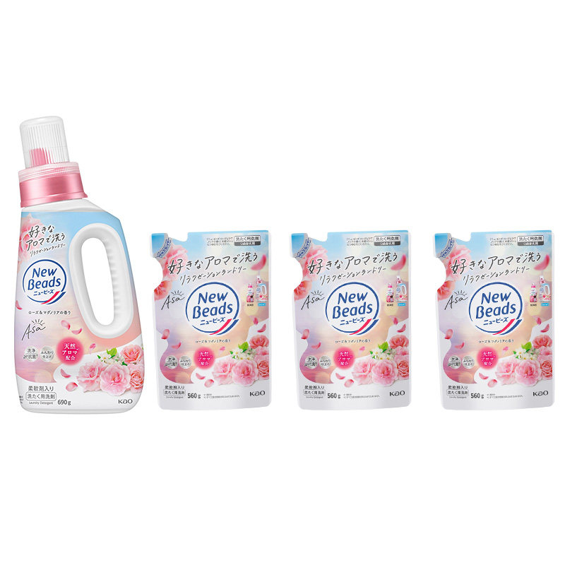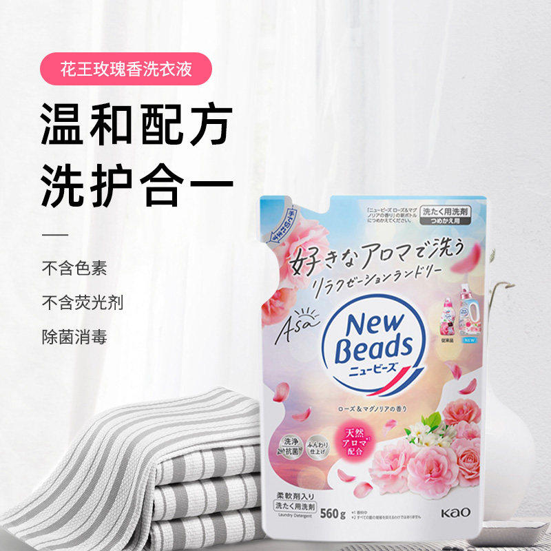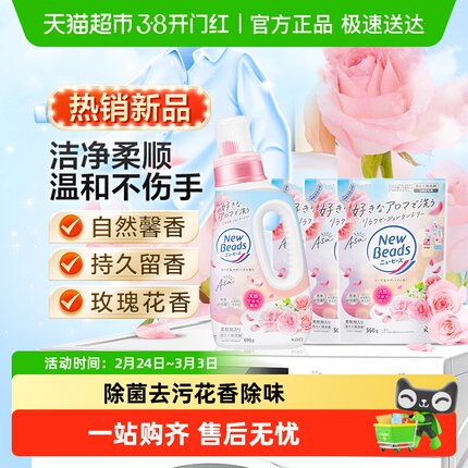 日本进口花王玫瑰花香洗衣液防静电持久留香柔顺剂去污渍组套