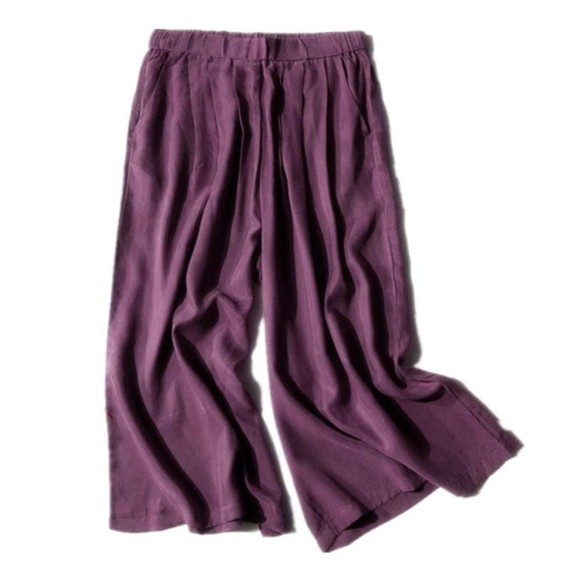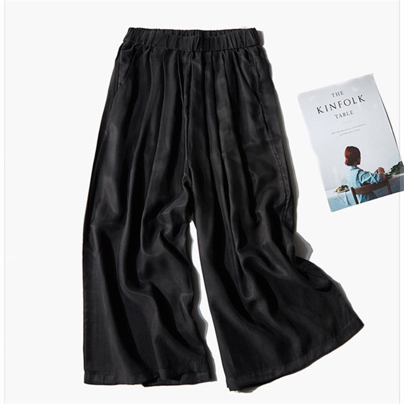 夏季裤子重磅真铜氨丝女裤显瘦七分高腰宽松阔腿裤九分桑蚕裤裙女
