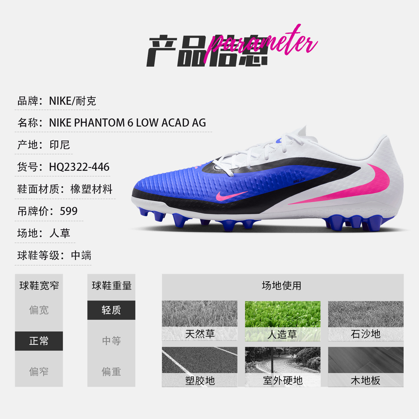 NIKE中端GX足球鞋AG男 哈兰德耐克PHANTOM低帮暗煞人草HQ2322-446