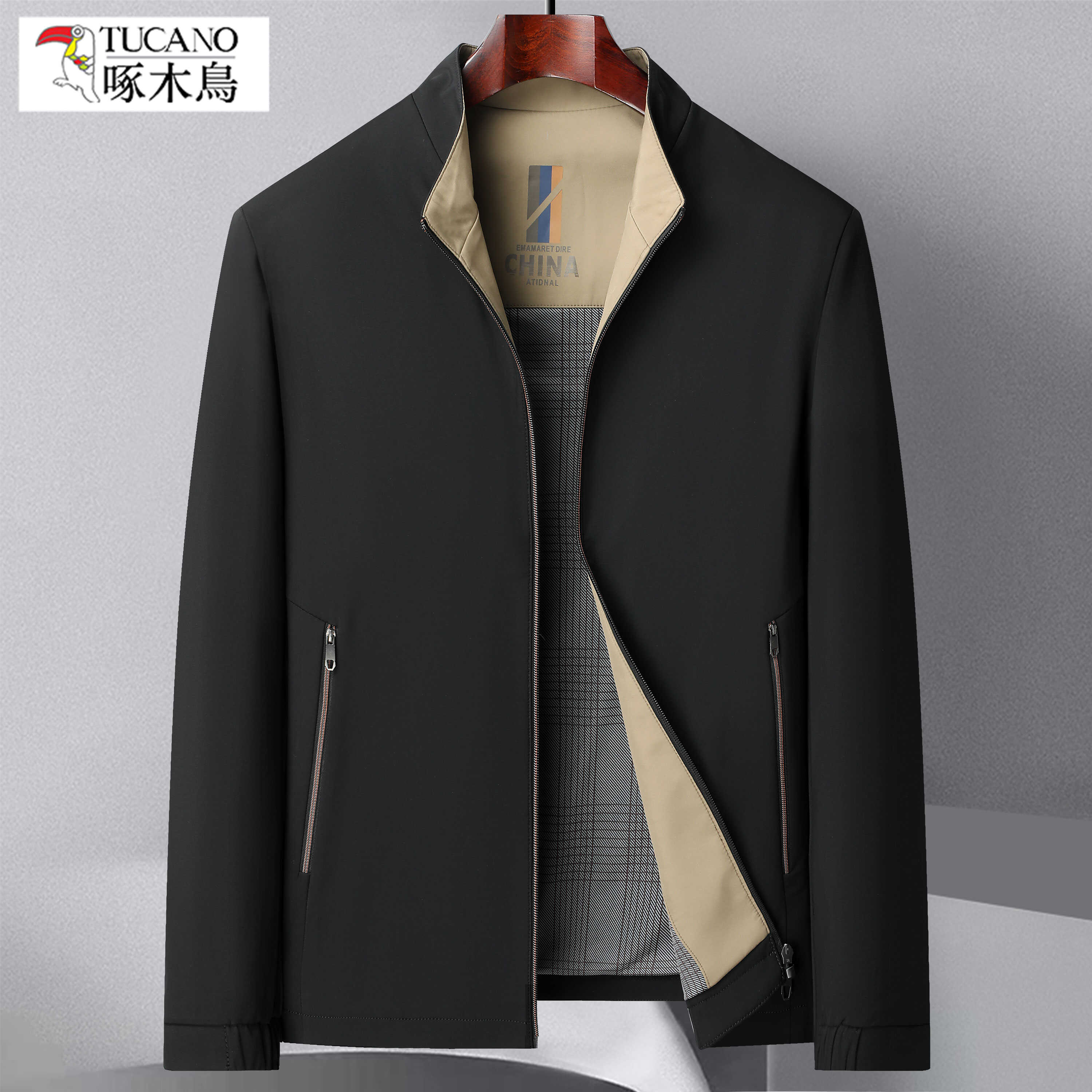 啄木鸟春秋上新男士商务休闲男士立领夹克外套中老年百搭爸爸装