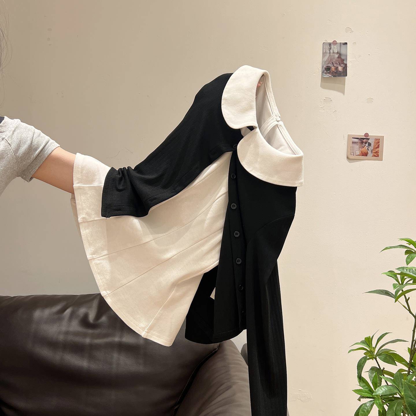 韩系外搭针织长袖开衫打底外套女初秋娃娃领背心蝴蝶结无袖小上衣