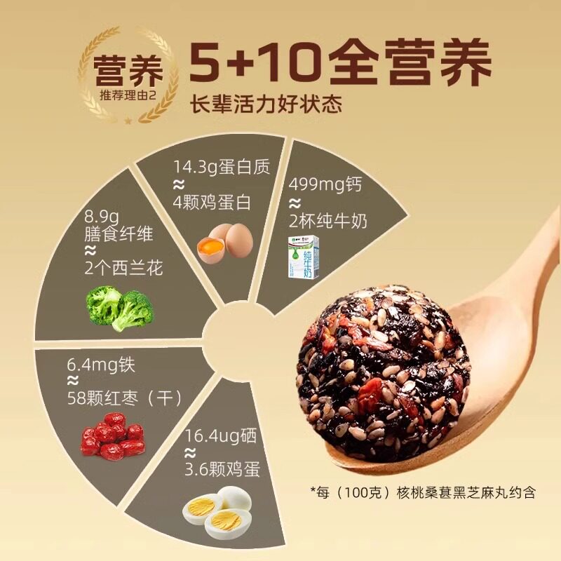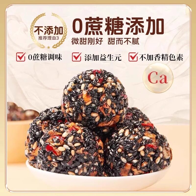 劲家庄黑芝麻丸核桃桑葚枸杞五黑营养孕妇即食纯黑芝麻球劲哥同款