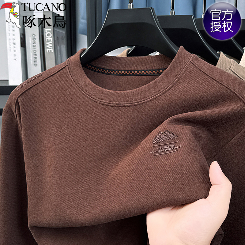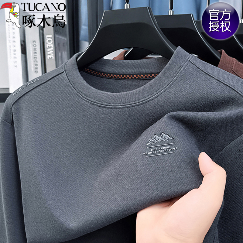 啄木鸟男士长袖t恤2025新款秋季中年爸爸装圆领套头休闲打底上衣T
